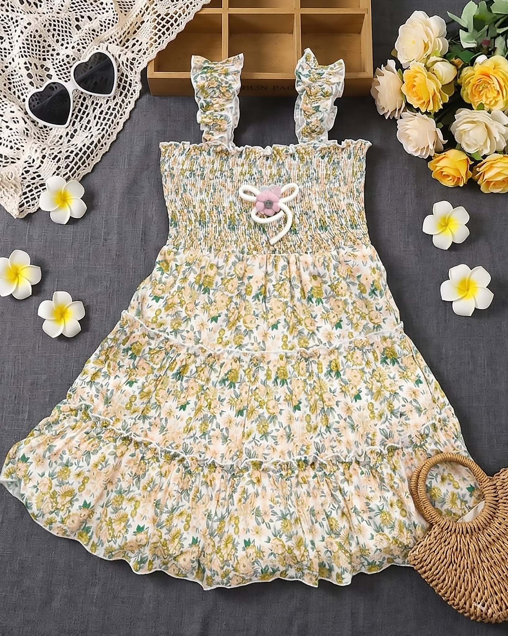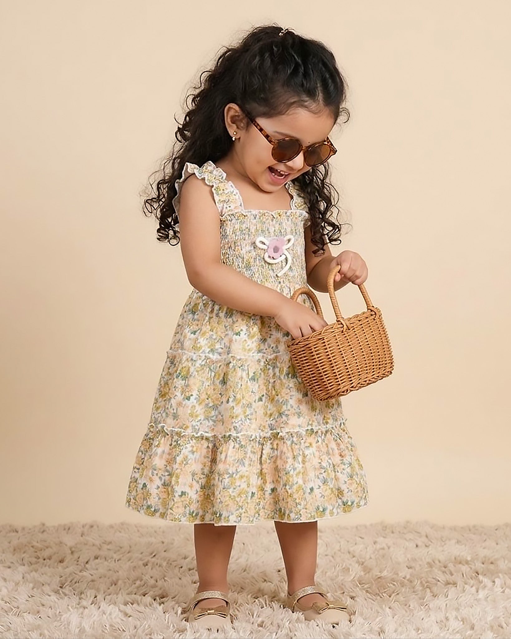 Floral Print Smocked Bodice Midi Dress