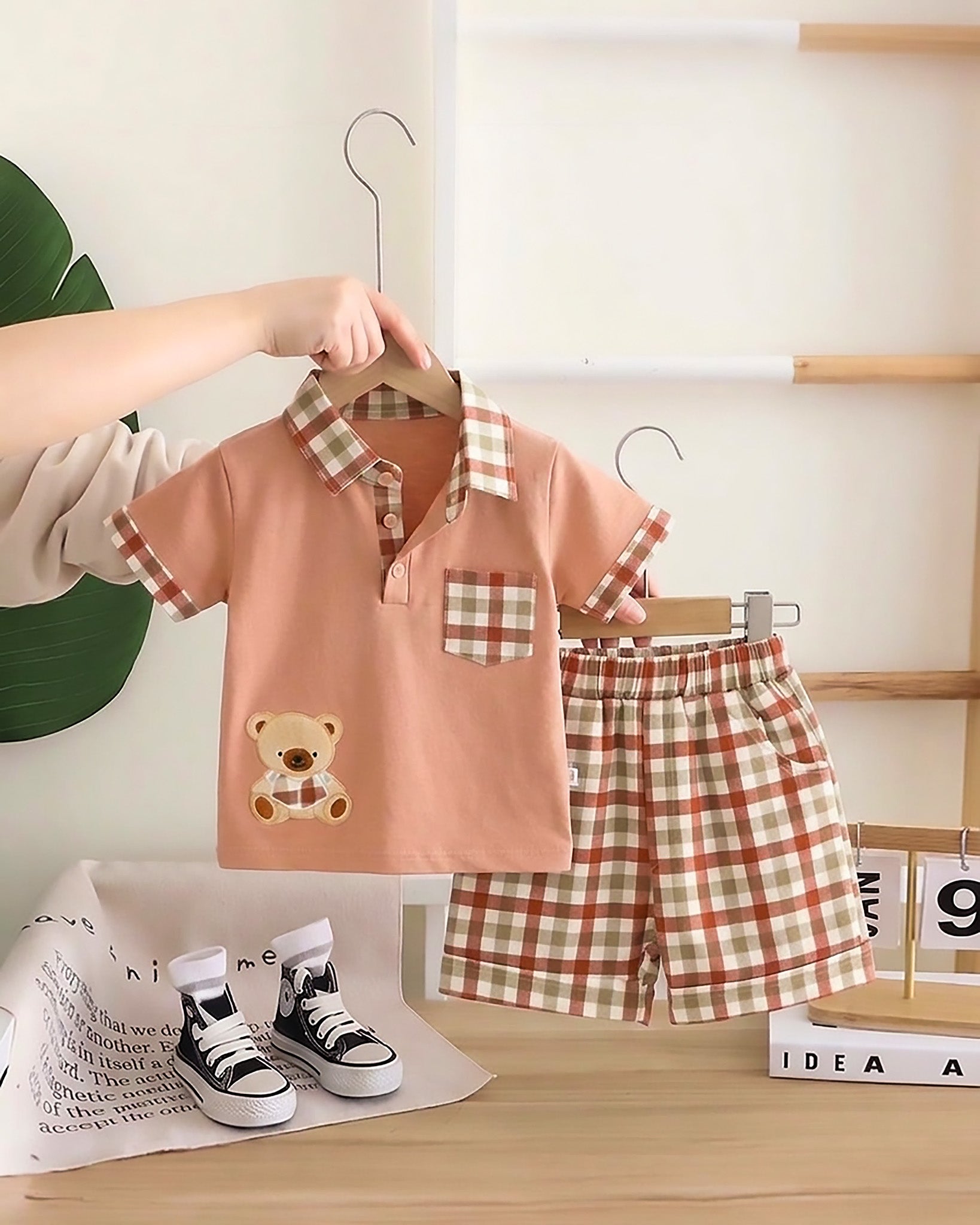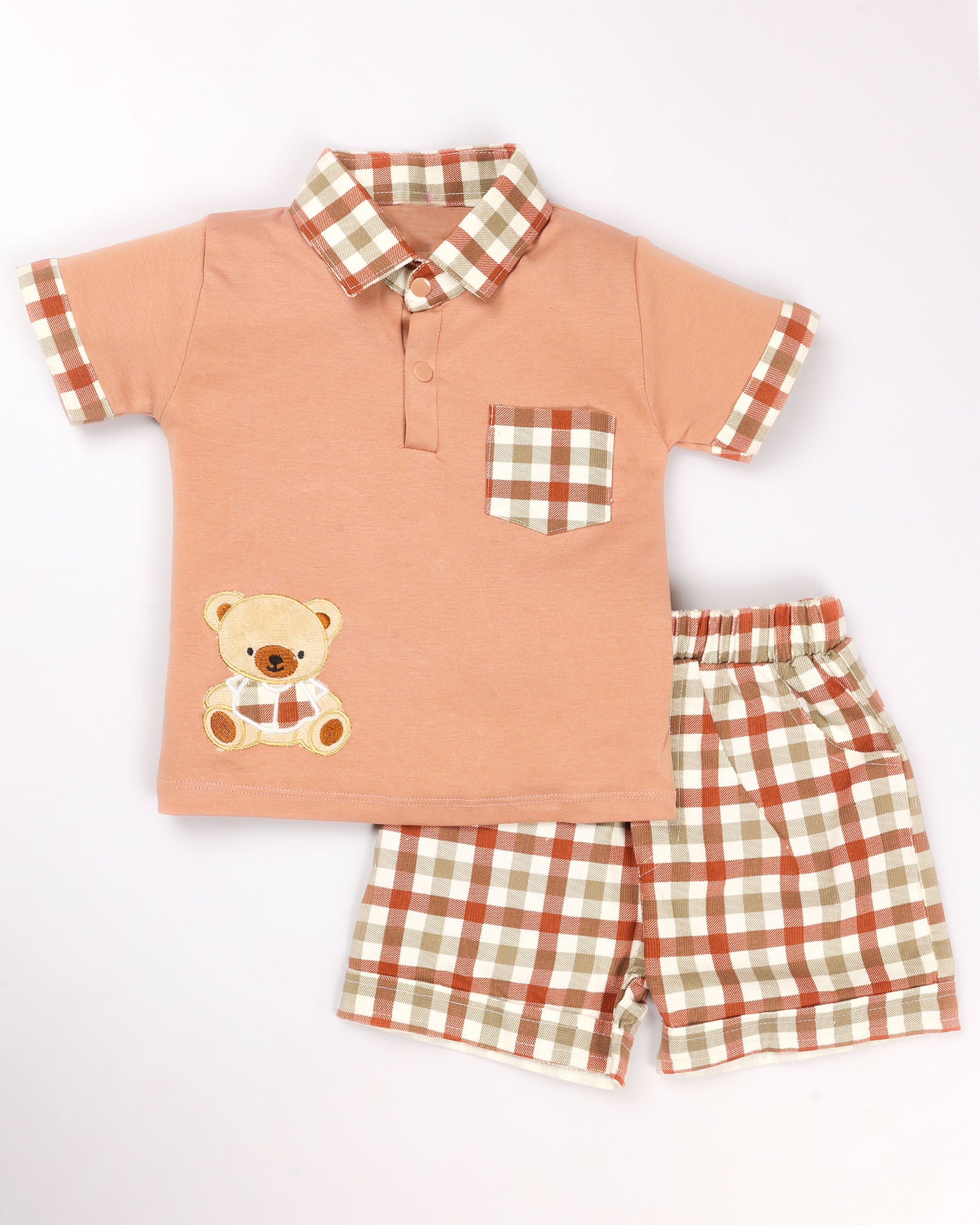 Check Textured Solid Shirt & Shorts Co-ord Set