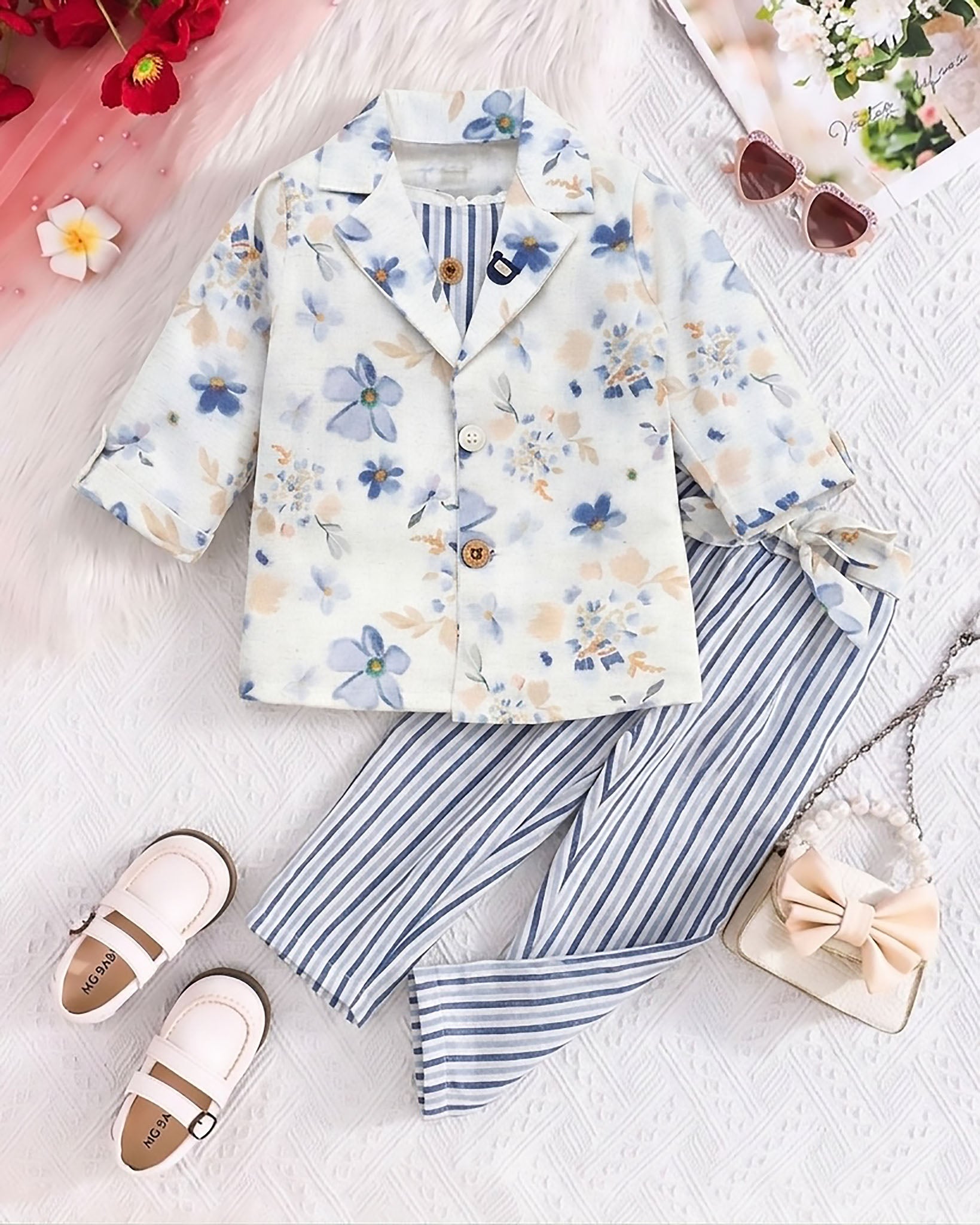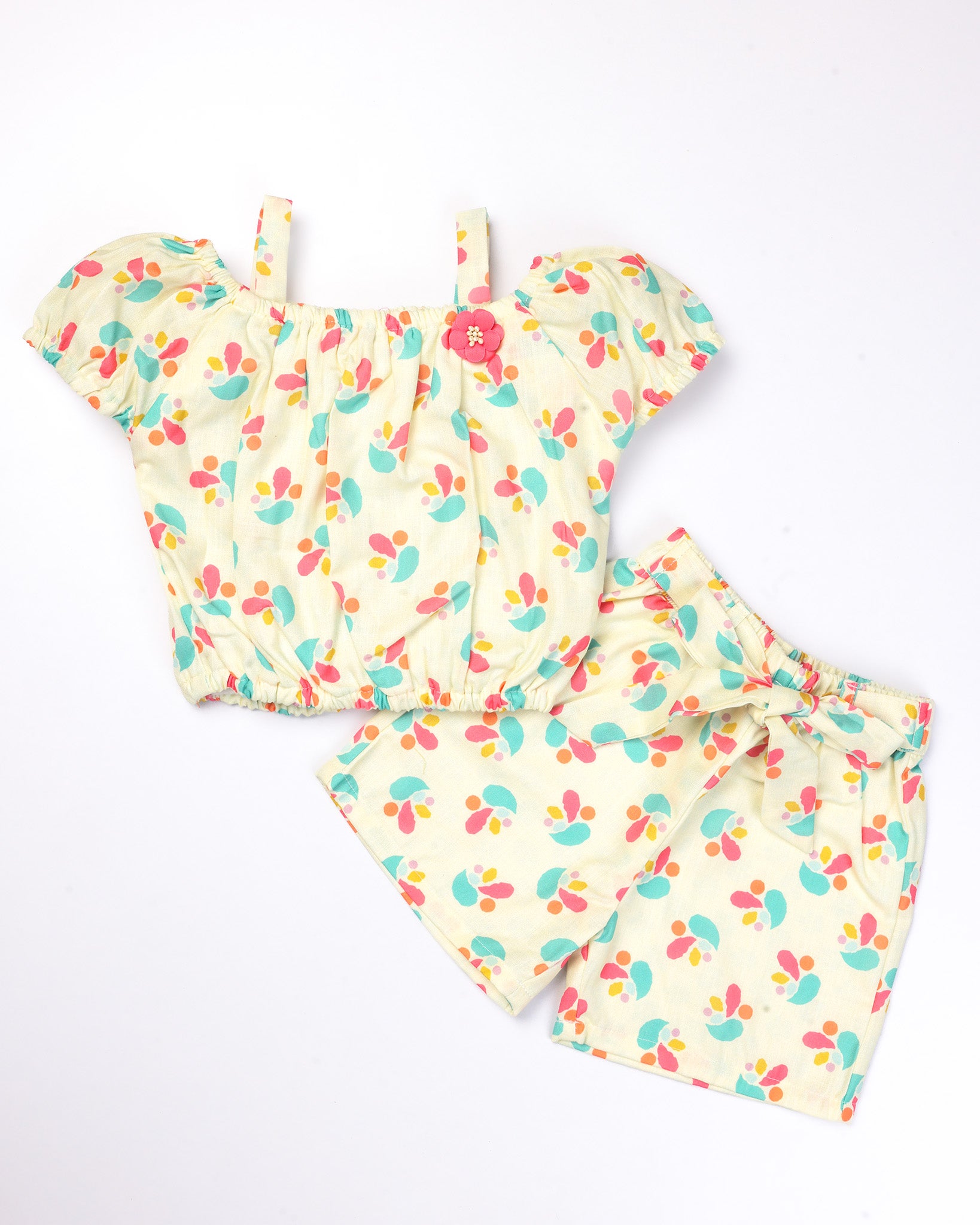Girls Floral Print Blouse and Shorts Set