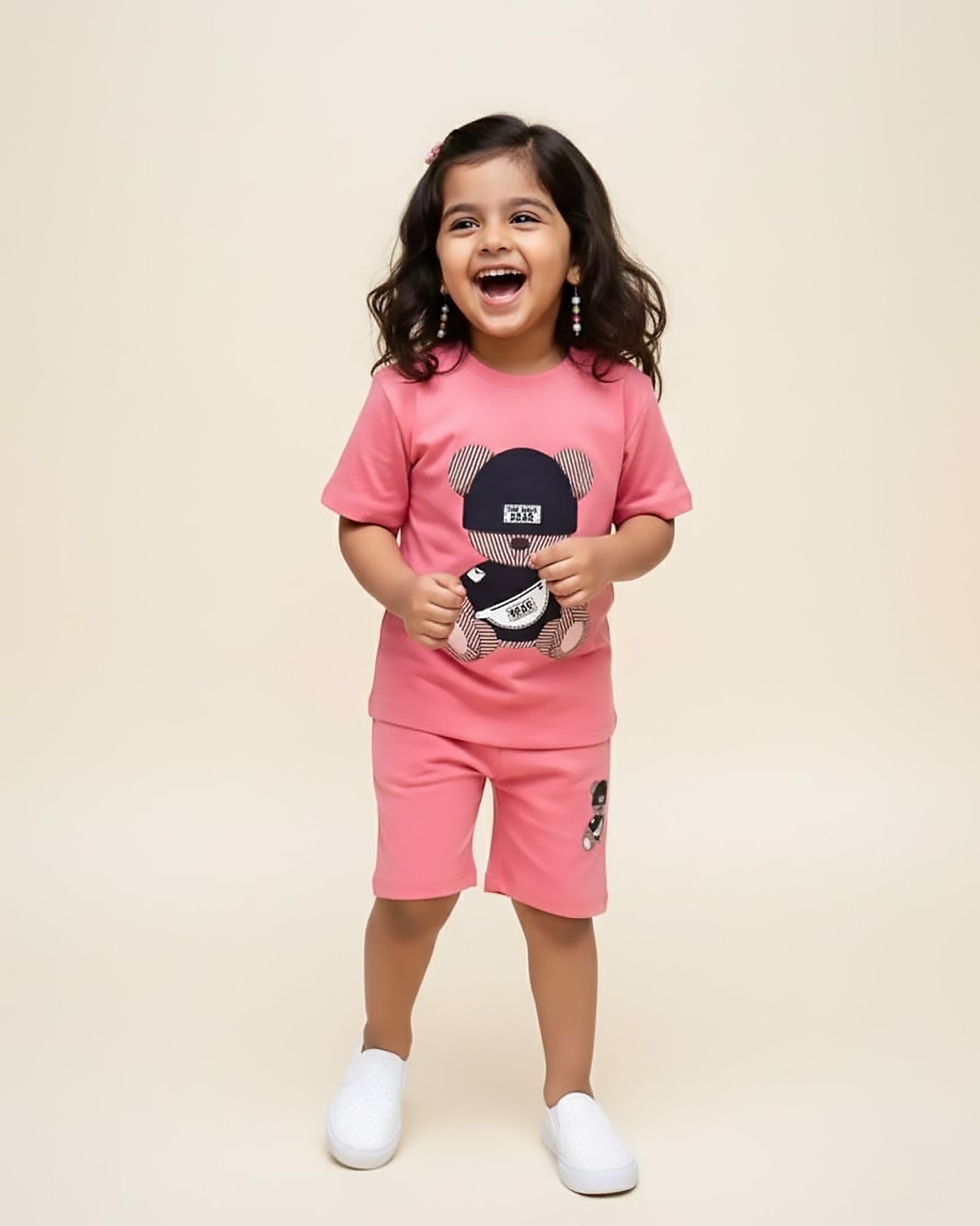 Bear Printed T-Shirt & Shorts Co-Ord Set