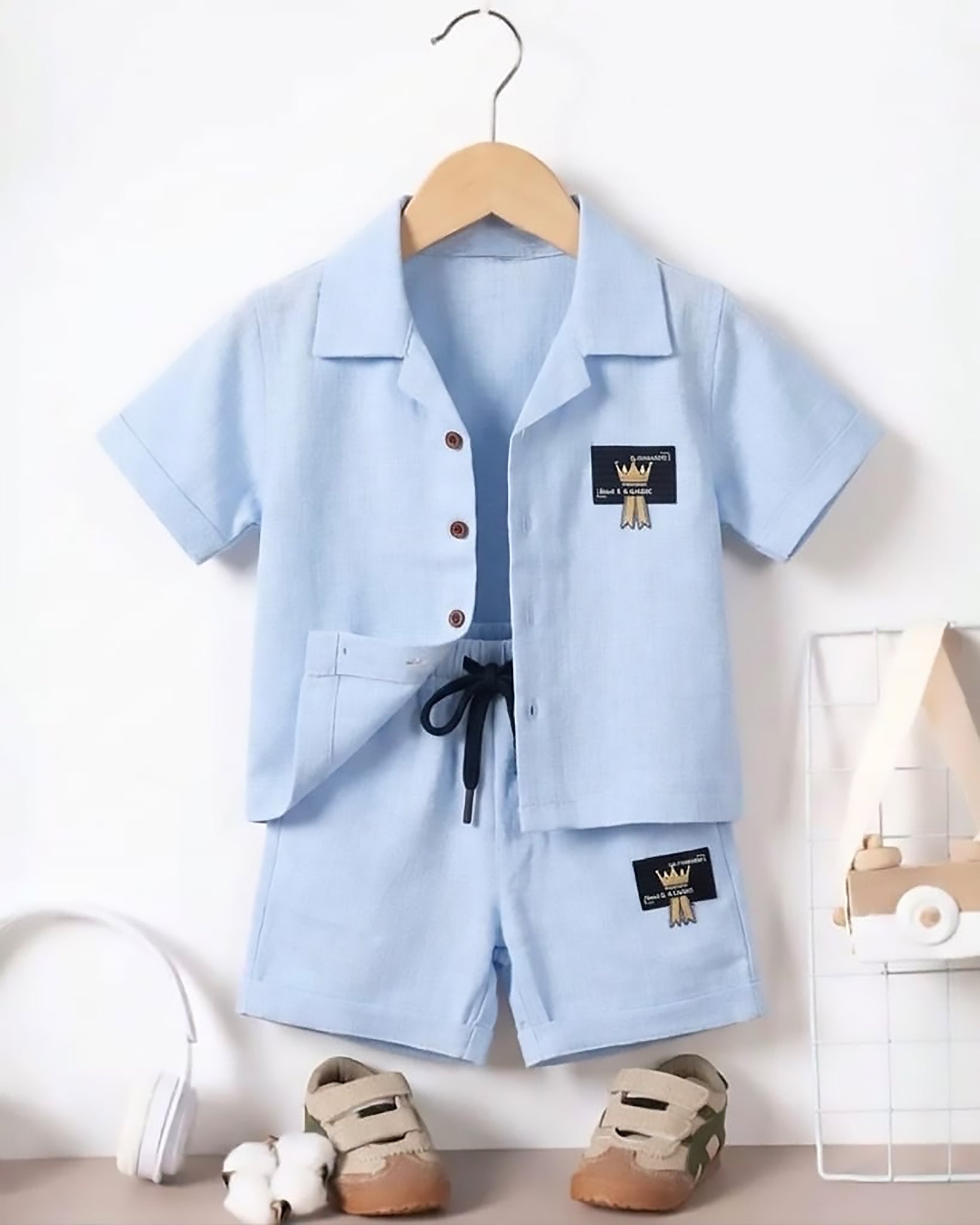 Pure Cotton Solid Shirt & Shorts Co-ord Set