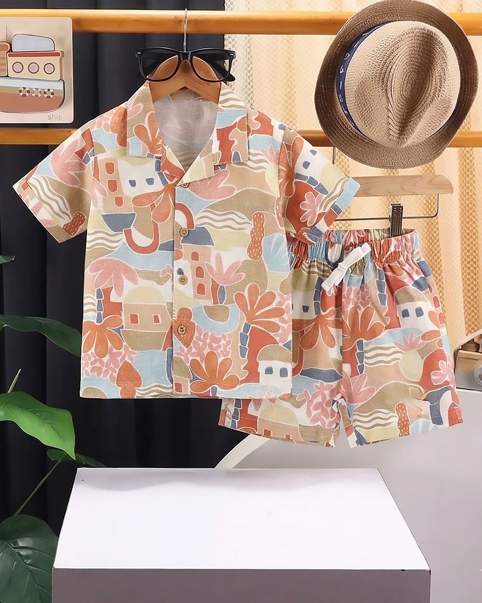 Beach Abstract Printed Shirt & Shorts Co-ord Set