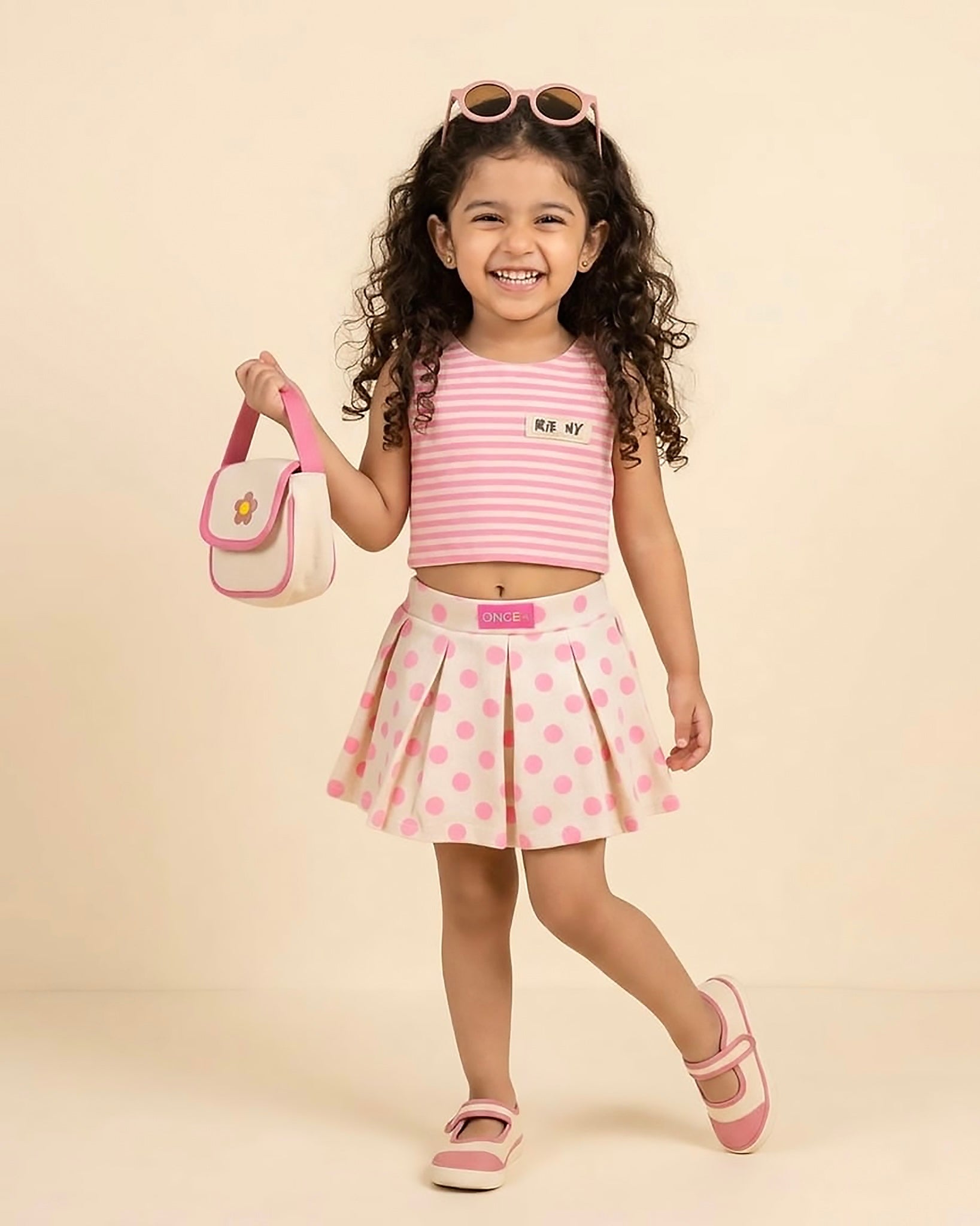 Soft Textured Stripe Top with Polka Skirt Set