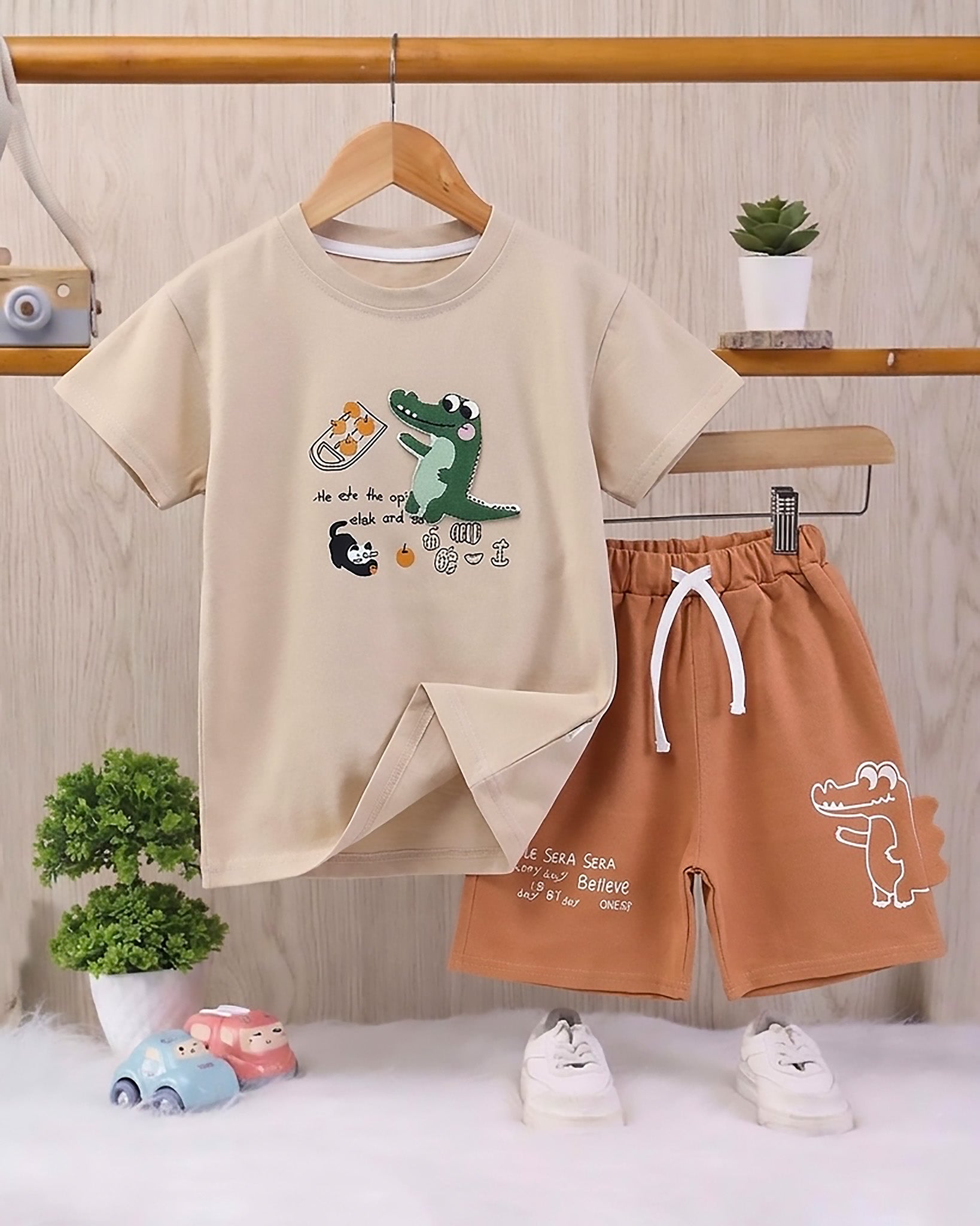 Croco Applique T-Shirt & Shorts Co-Ord Set