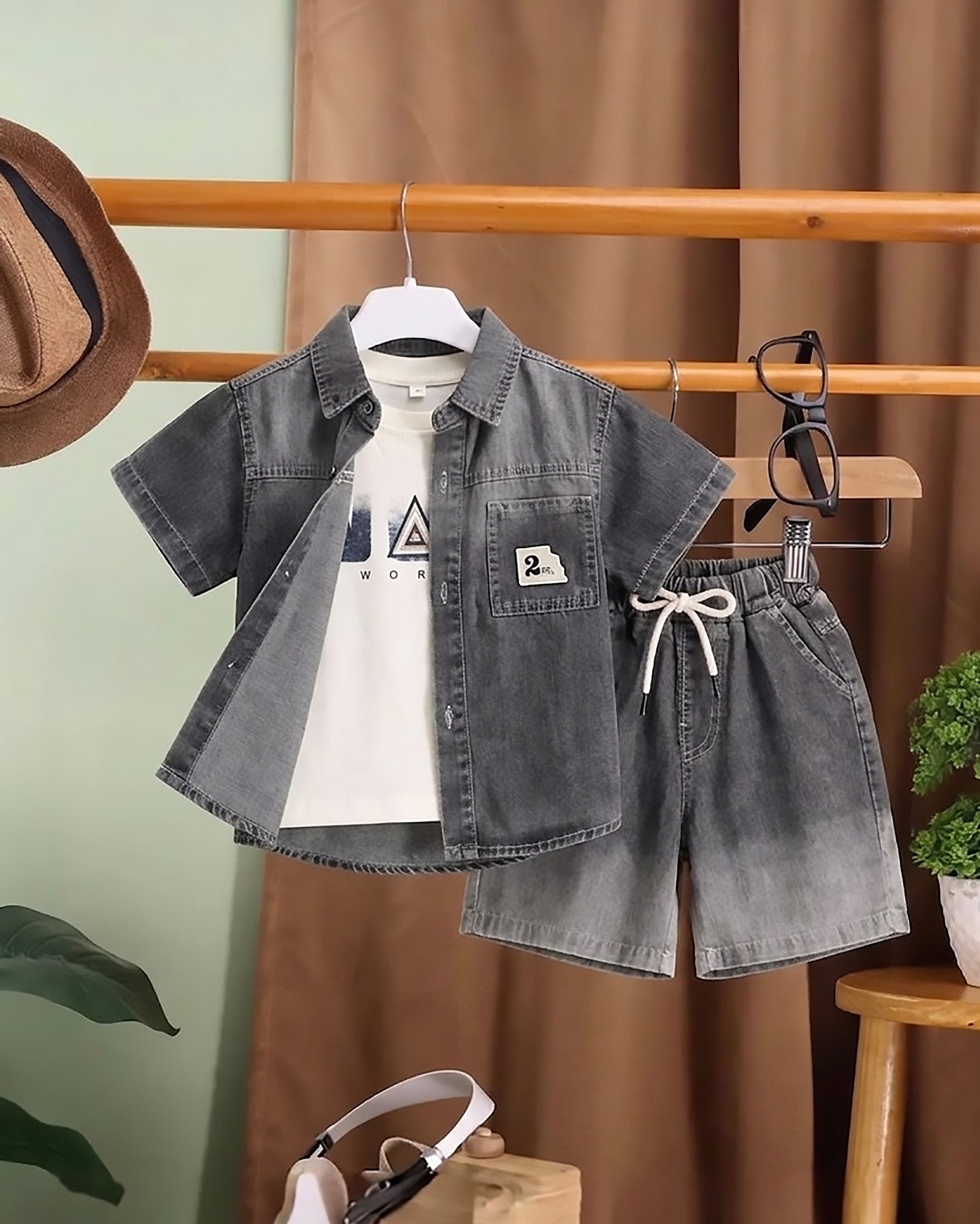 3-Piece Denim Co-ord Set with Sleeveless T-Shirt