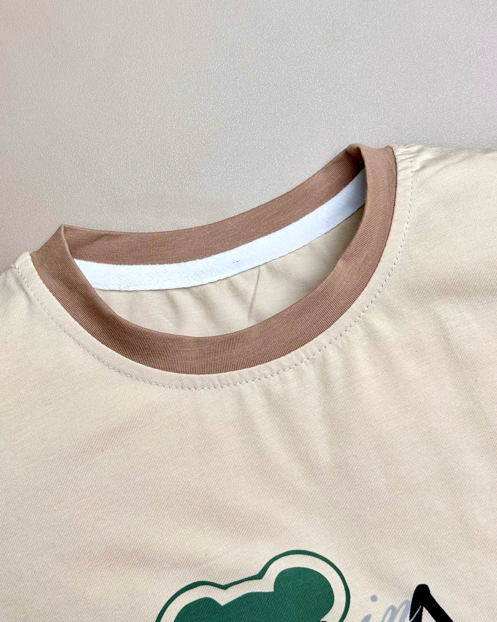 Let your little cub step out in effortless cuteness with our Bear Printed Co-Ord Set in Beige – a comfy, casual outfit made for big hugs and mini adventures! This adorable two-piece set features a soft short-sleeved cotton t-shirt with a bold “BEAR” graphic and motivational “Believe in Yourself” message layered stylishly across a bear-shaped patch. The matching elastic waist shorts come in an eye-catching green and beige checkered bear print for a fun pop of personality.