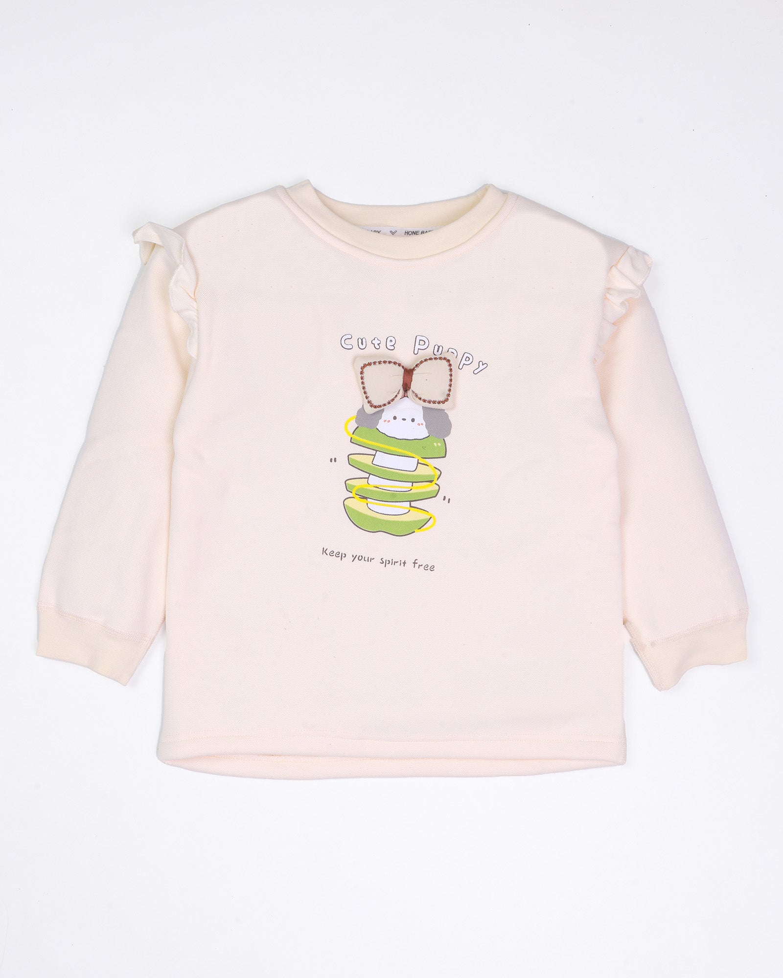 - Ruffled Shoulder Details – Delicate frills that give the sweatshirt a fashionable, feminine silhouette.