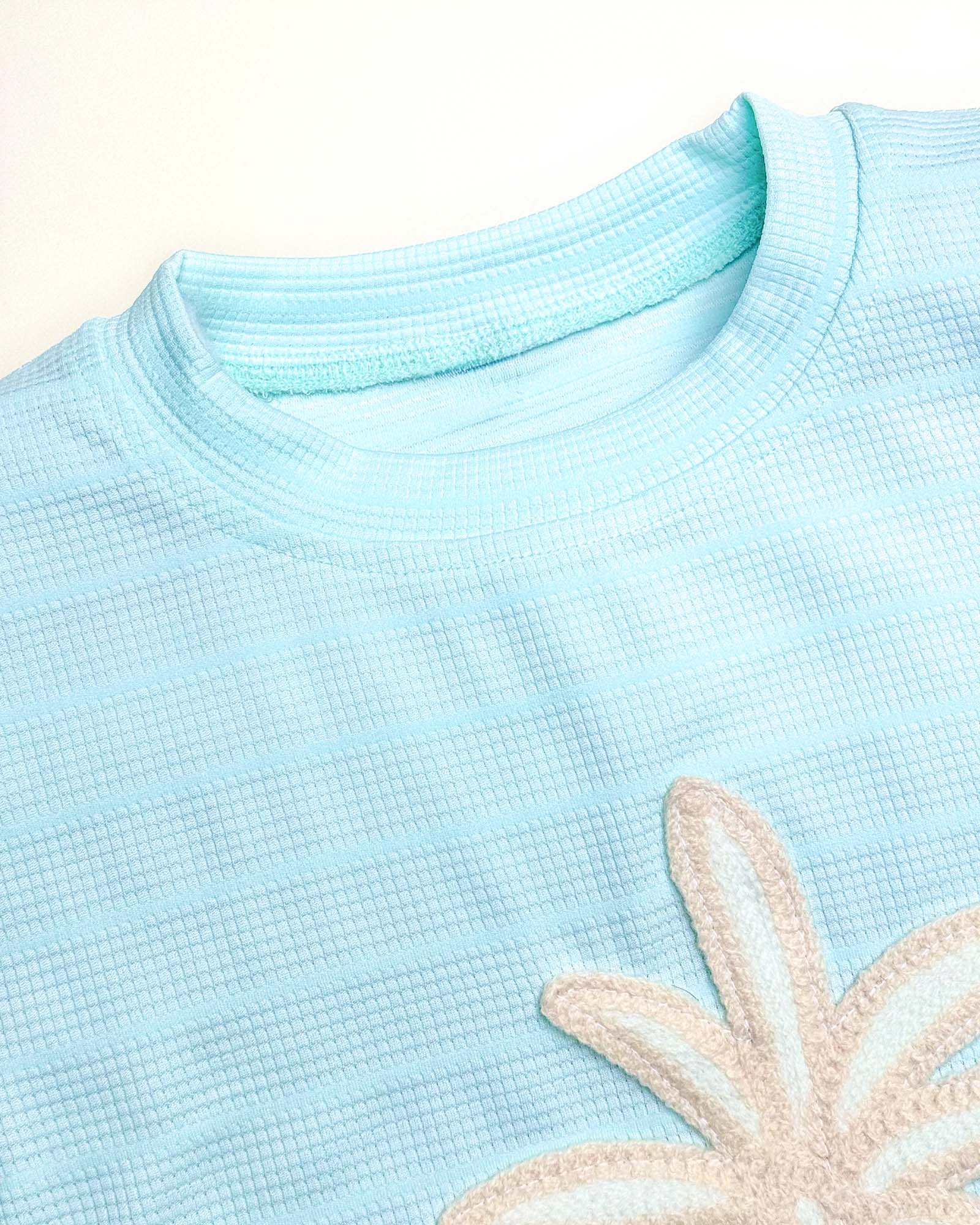 Get ready to sprinkle some tropical fun into your child’s everyday style with our Coconut Tree Appliquéd Textured Co-ord Set in a soothing aqua blue shade! Perfect for playful days and sunny outings, this trendy co-ord combines effortless comfort with eye-catching details.