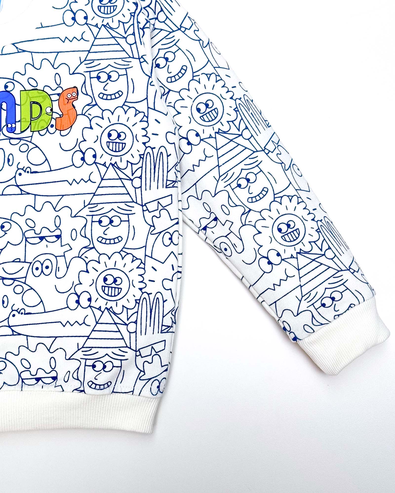 Turn winter into a playful style story with our FRIENDS Graffiti Printed Fleeced Co-ord Set, designed for kids who love to express themselves! This cozy cream-colored masterpiece features an all-over graffiti doodle print that shouts creativity and joy. Perfect for lazy mornings, active playdates, and winter cuddles, it’s fashion and fun rolled into one.