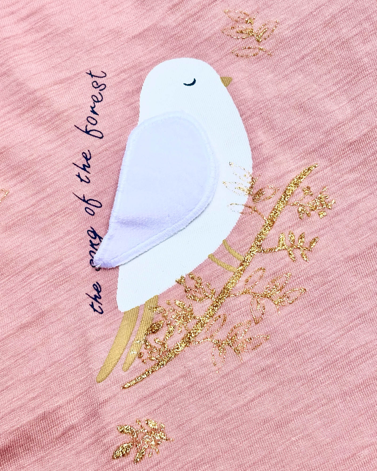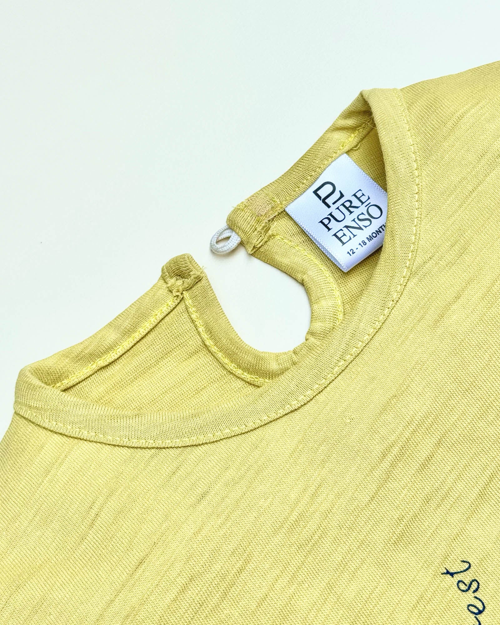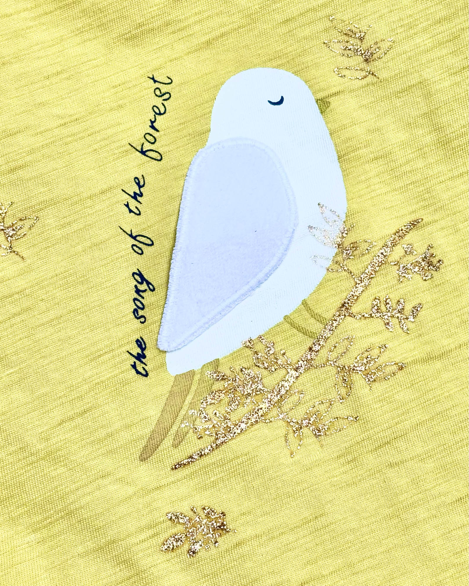 Brighten up your baby girl's day with this adorably stylish Frill Sleeve Top & Pants Co-Ord Set. Designed in a soft lemon yellow hue, the long-sleeve top features delicate ruffle detailing on the sleeves and an appliqué bird embroiderythat reads "The Song of the Forest" – perfect for your little nature lover. Paired with crisp white cotton pants featuring a sweet bow-tie waistband, this set balances comfort with charm effortlessly.