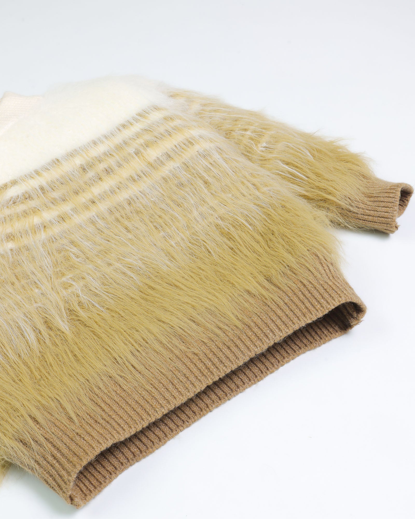 Our Full Fur Textured Sweater – Butter is designed to wrap your little one in pure softness and warmth. Featuring a luxurious full-fur texture with subtle horizontal detailing and a soothing butter-yellow hue, this sweater brings together comfort, elegance, and adorable winter style in one perfect layer.