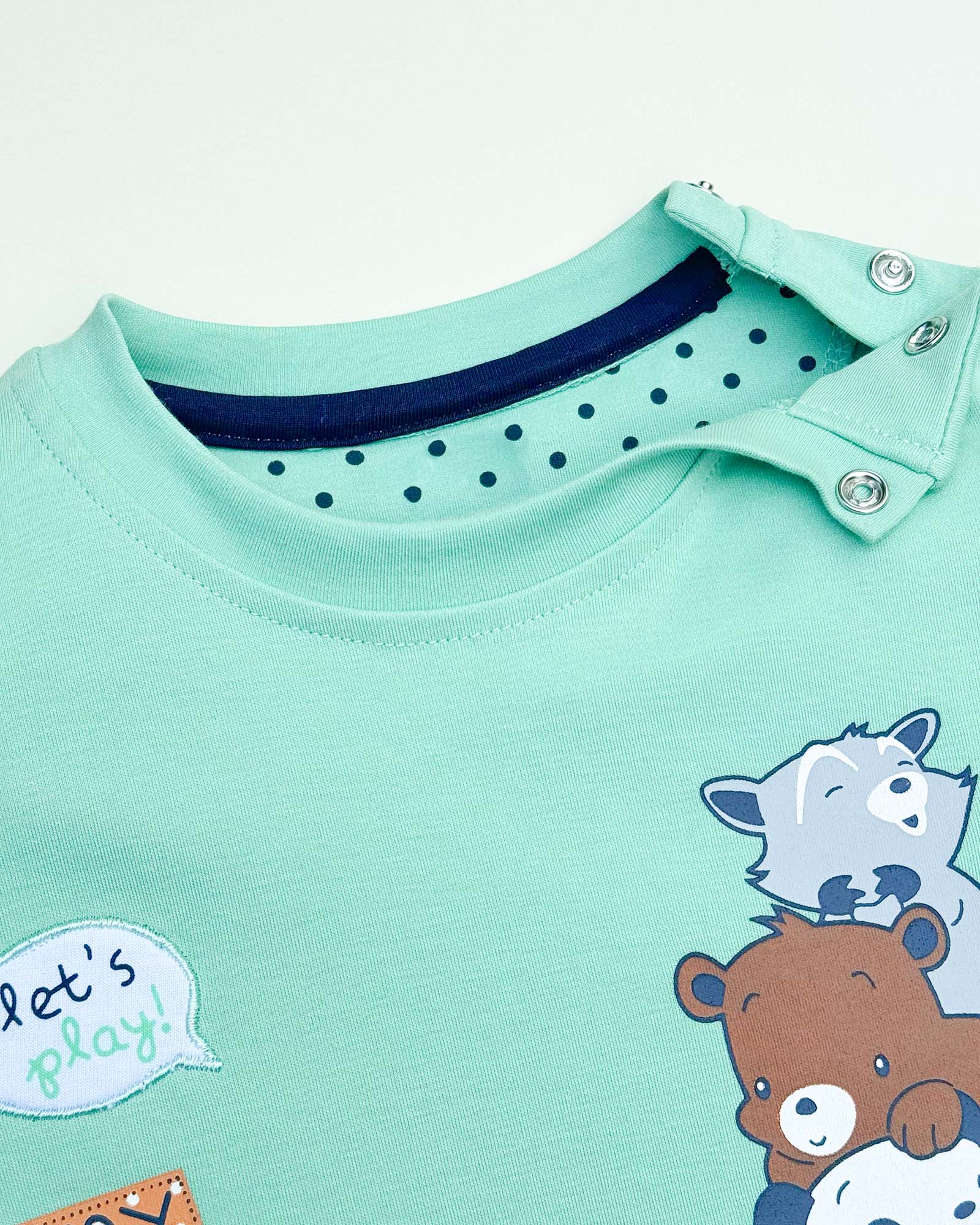 - Convenient snap button closures on shoulder and legs – easy dressing & diaper changes.