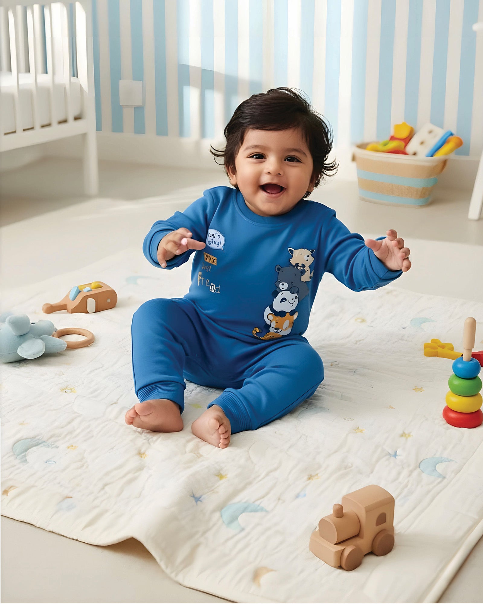 - Ultra-soft, breathable cotton blend fabric – gentle on sensitive baby skin.