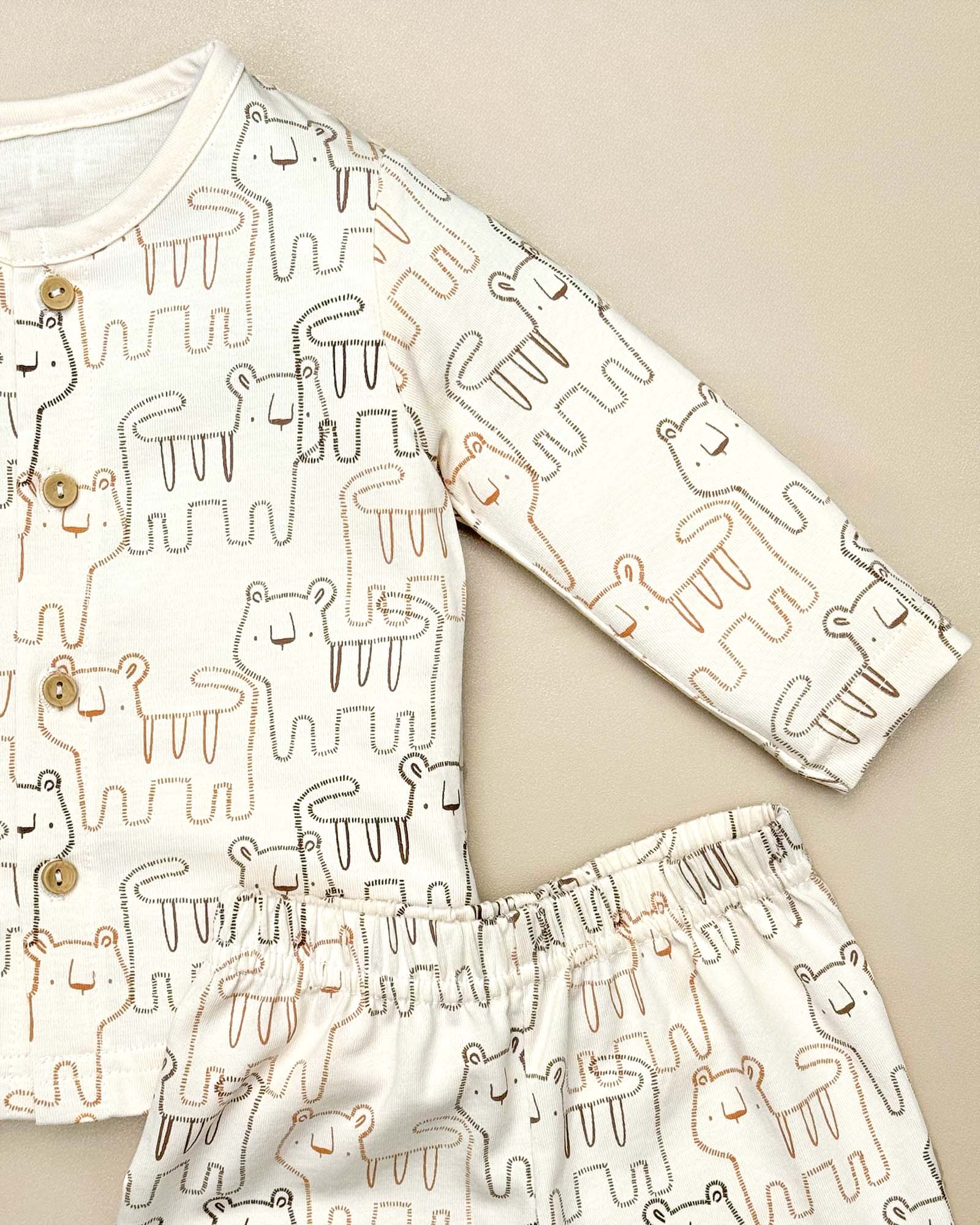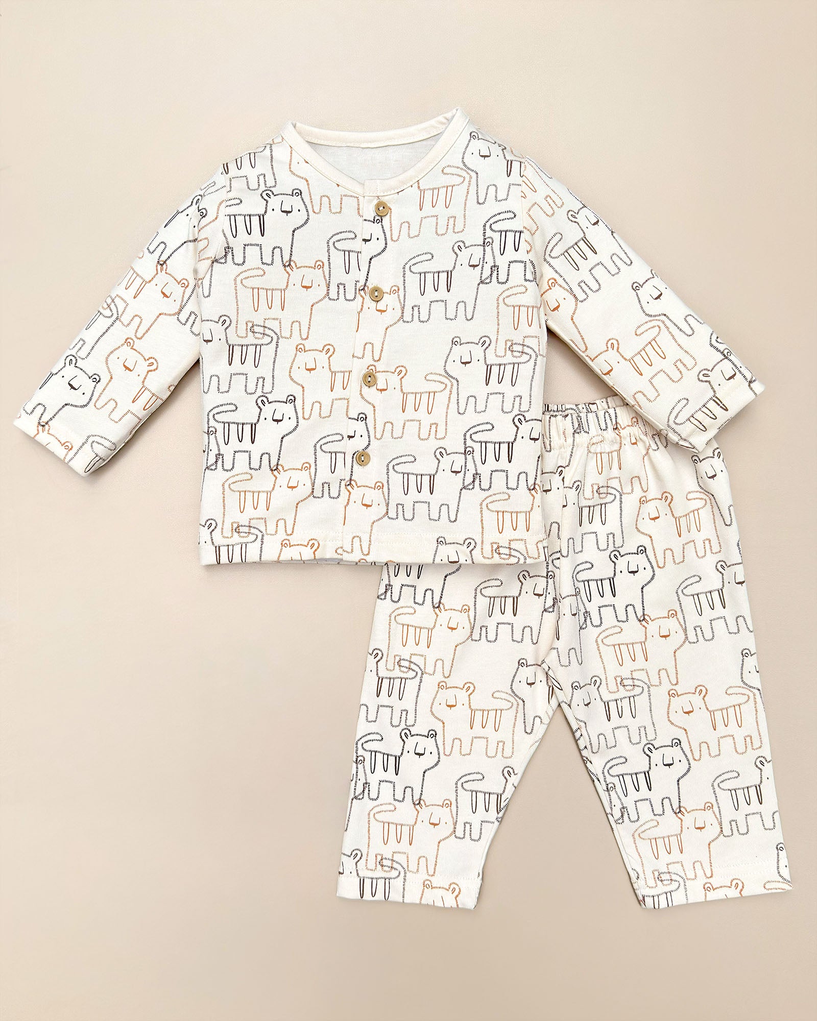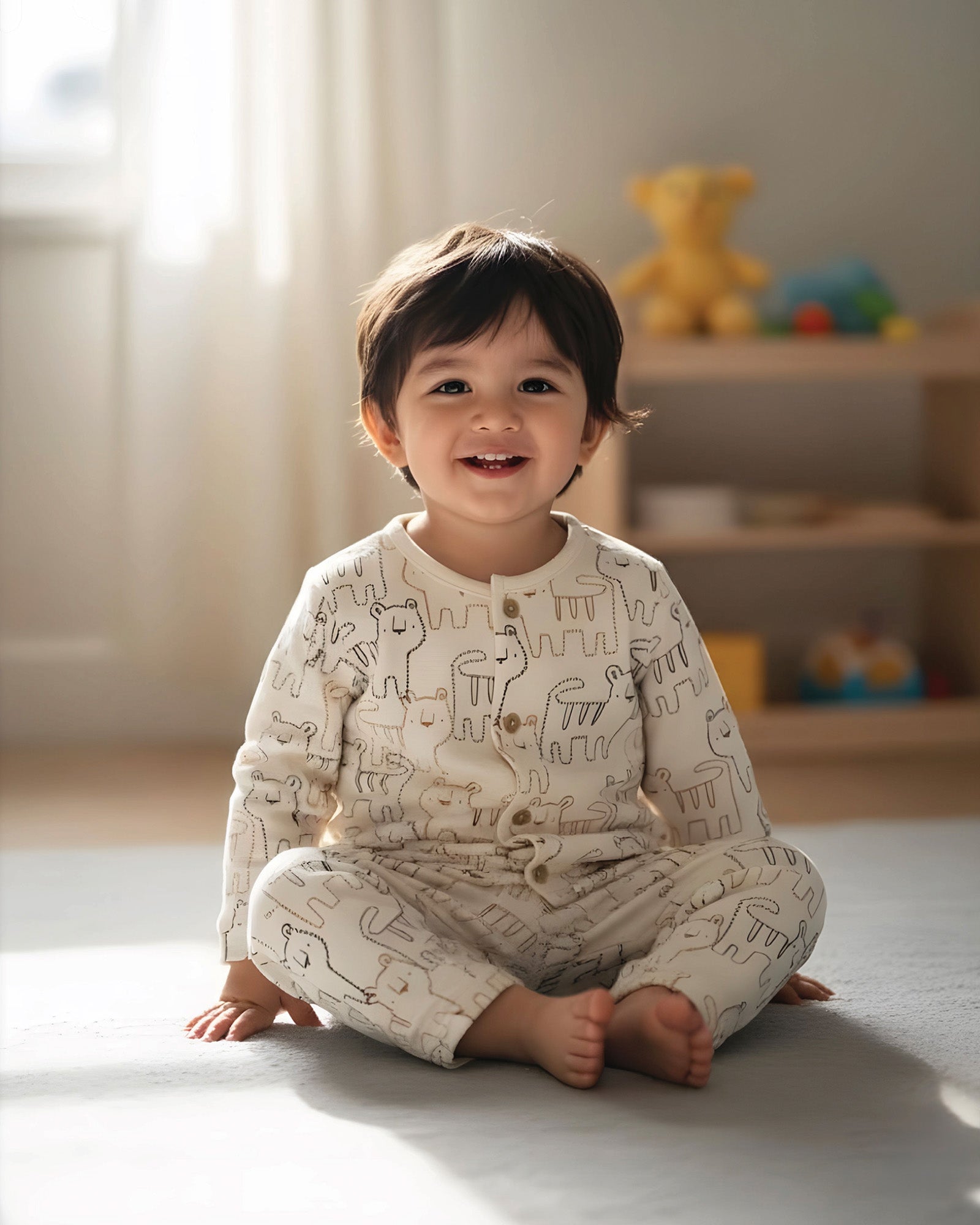 Make every day extra playful and cozy with our Full Sleeve Front Open Lion Graffiti Printed Co-ord Set. Designed for the happiest little explorers, this adorable co-ord set features a vibrant lion graffiti print that brings cheerful energy to your baby’s wardrobe. Made from soft, breathable cotton fabric, it keeps your child comfy and cozy all day long.