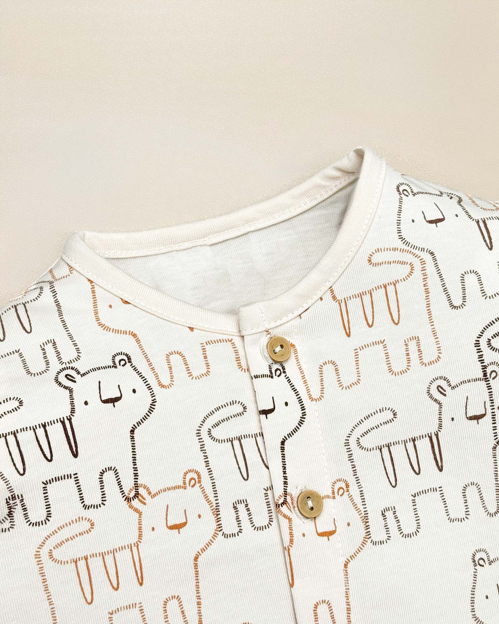 Thoughtfully crafted with easy-care features, the top boasts button-front closure for effortless dressing, while the elastic waistband on the pants ensures a comfortable, snug fit. Elasticated cuffs at sleeves and ankles add extra warmth and prevent slipping, making it ideal for active babies aged 0–9 months.