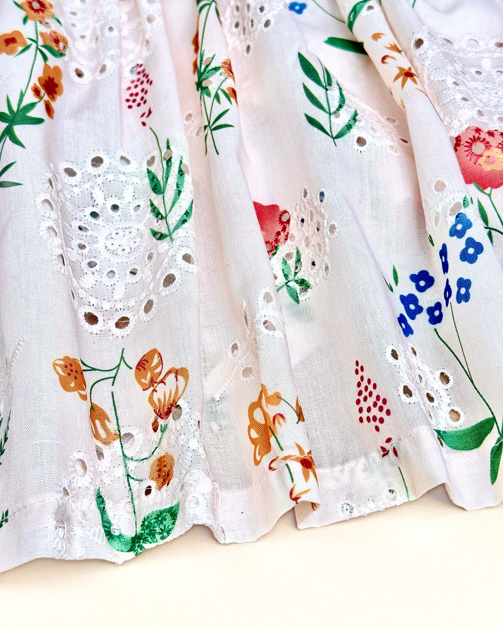 - Powder peach base with vibrant floral prints and delicate chikankari-inspired cutwork.