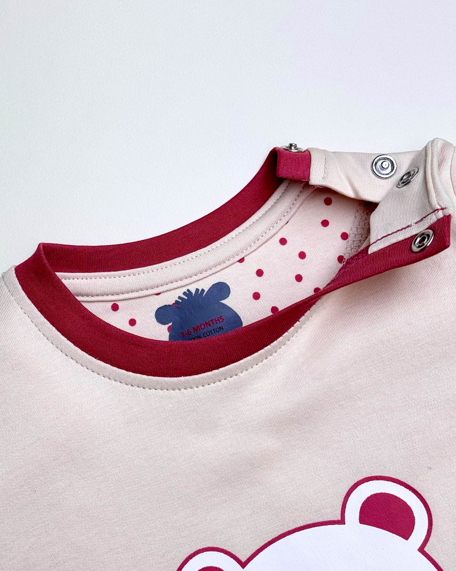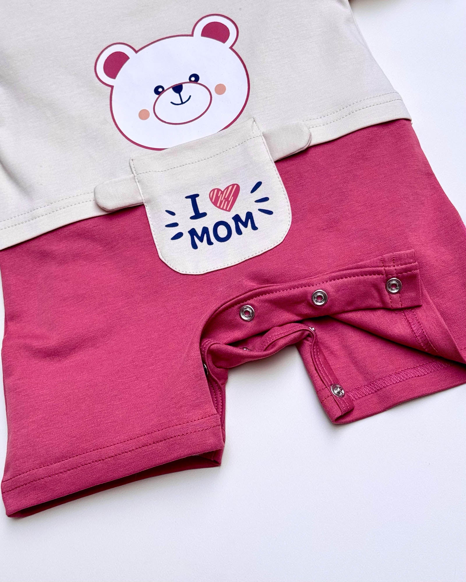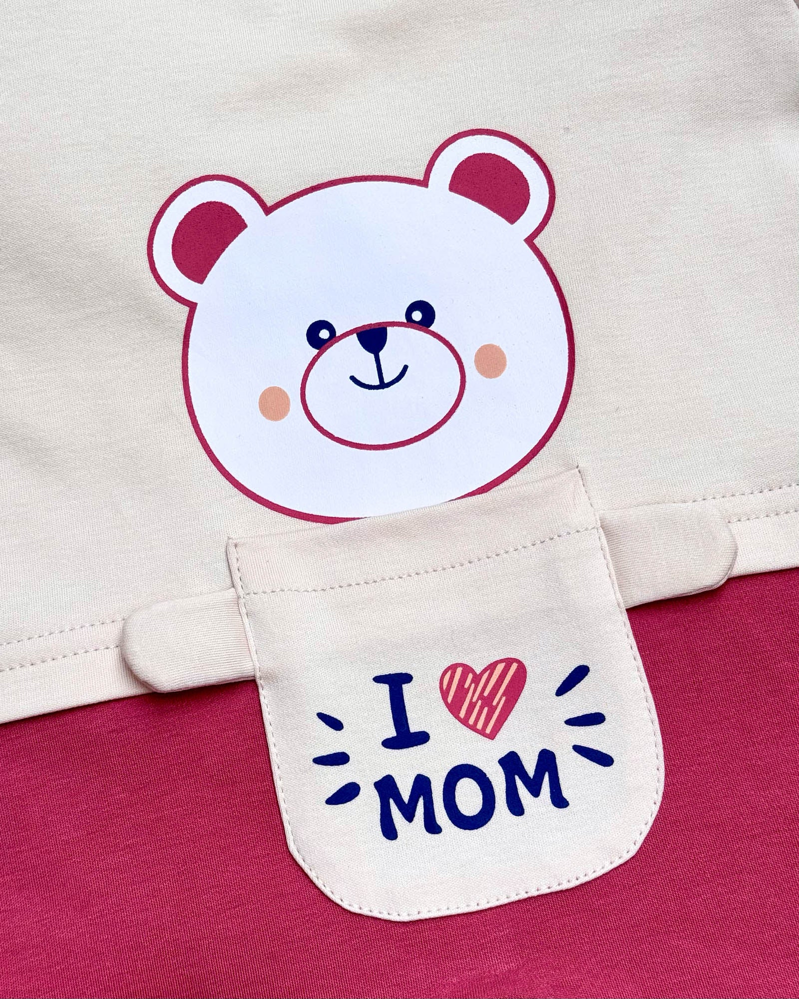 - Cute teddy bear print with “I ❤️ Mom” patch for extra charm.