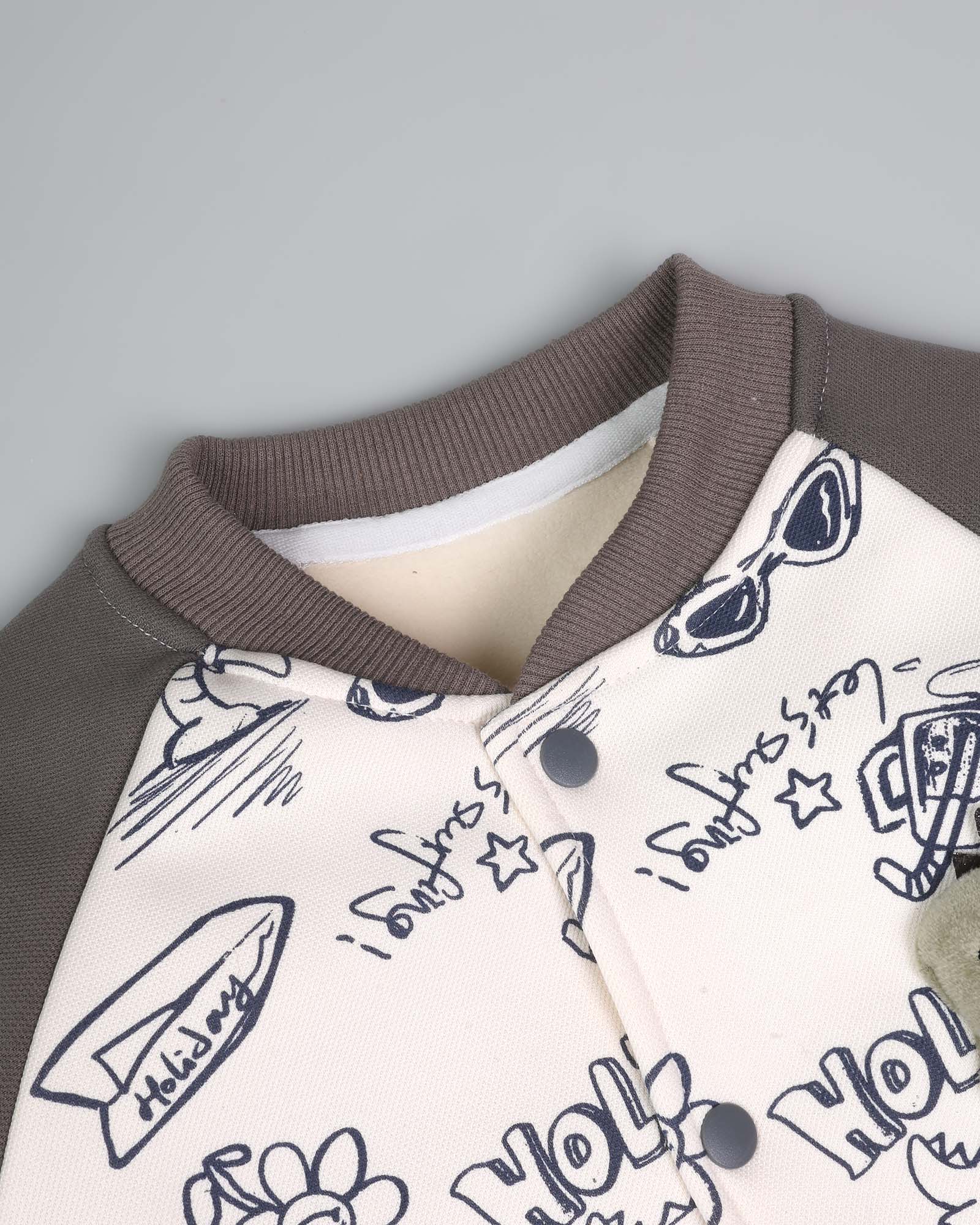 Holiday Graffiti Printed Appliqued Baseball Jacket