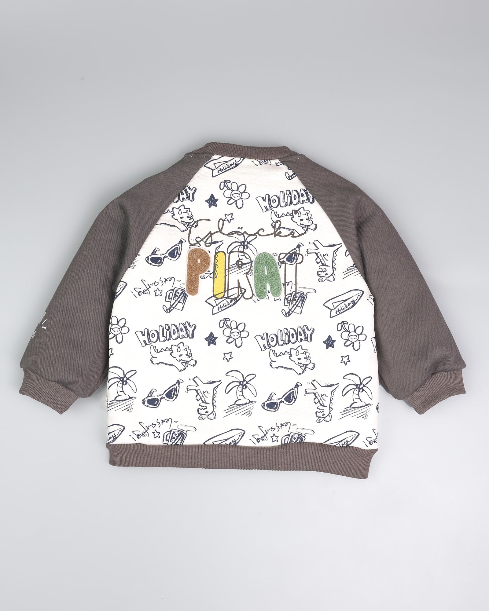 - Vibrant Graffiti Print – Modern, hand-drawn "Holiday" sketches and playful motifs for a unique, street-style look.