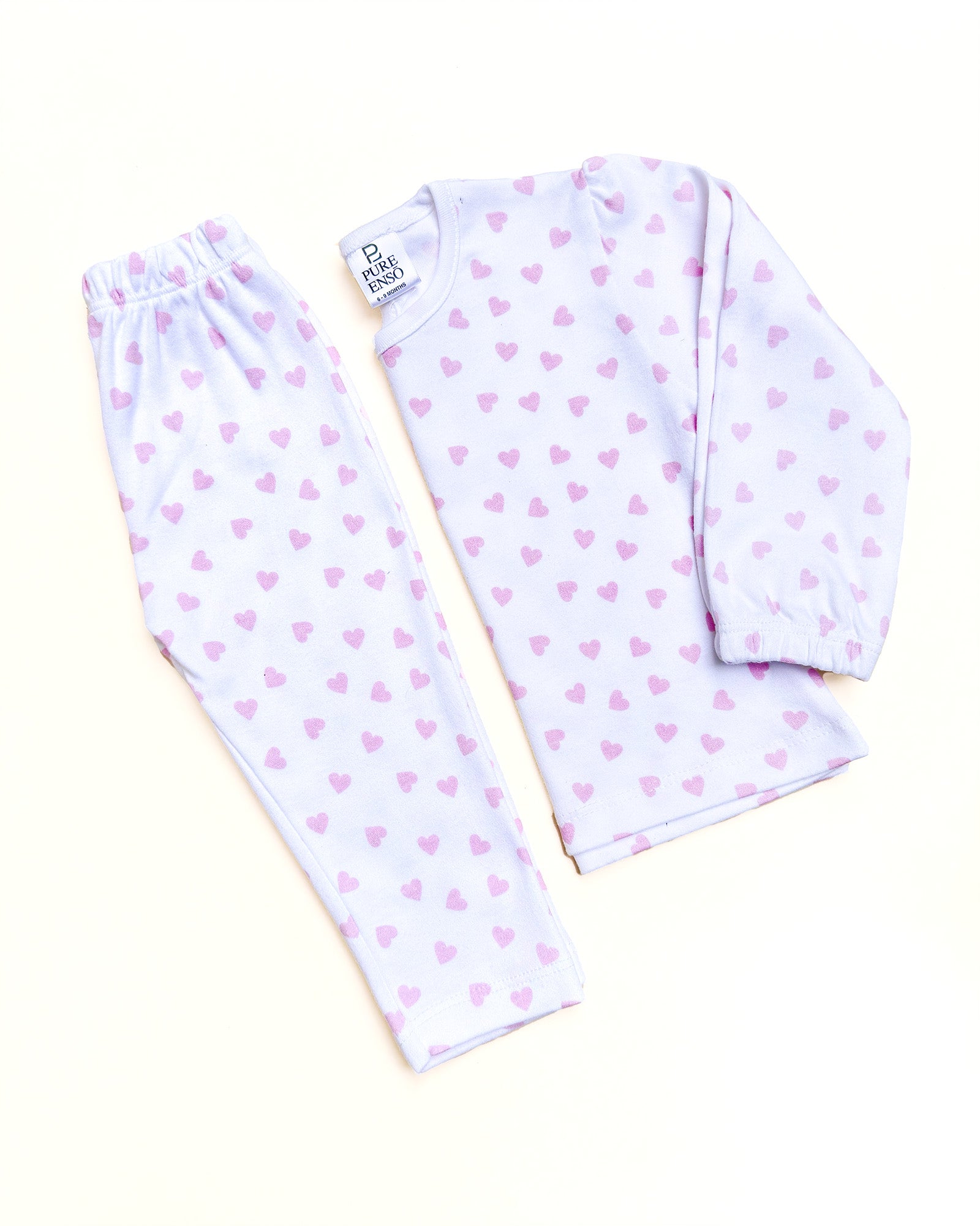 The dress features adorable heart prints all over, symbolizing love and joy, while the cute appliqué embroidery on the front adds an extra dose of charm. Designed in a soothing baby pink hue, it’s perfect for everyday wear, playdates, or special occasions.