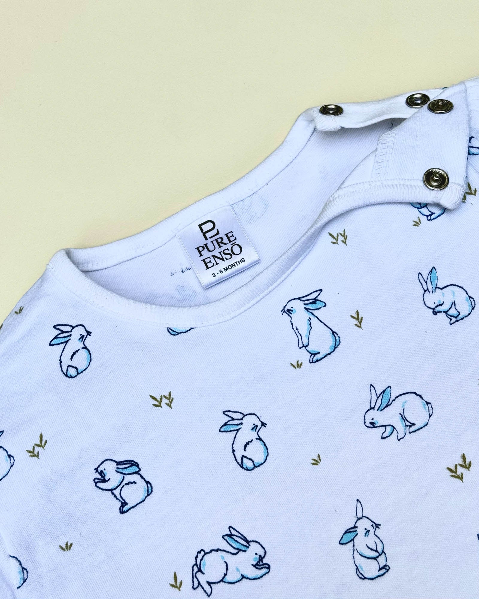 - Knitted full-sleeved cotton T-shirt with all-over bunny print – soft, breathable & gentle on baby skin.
