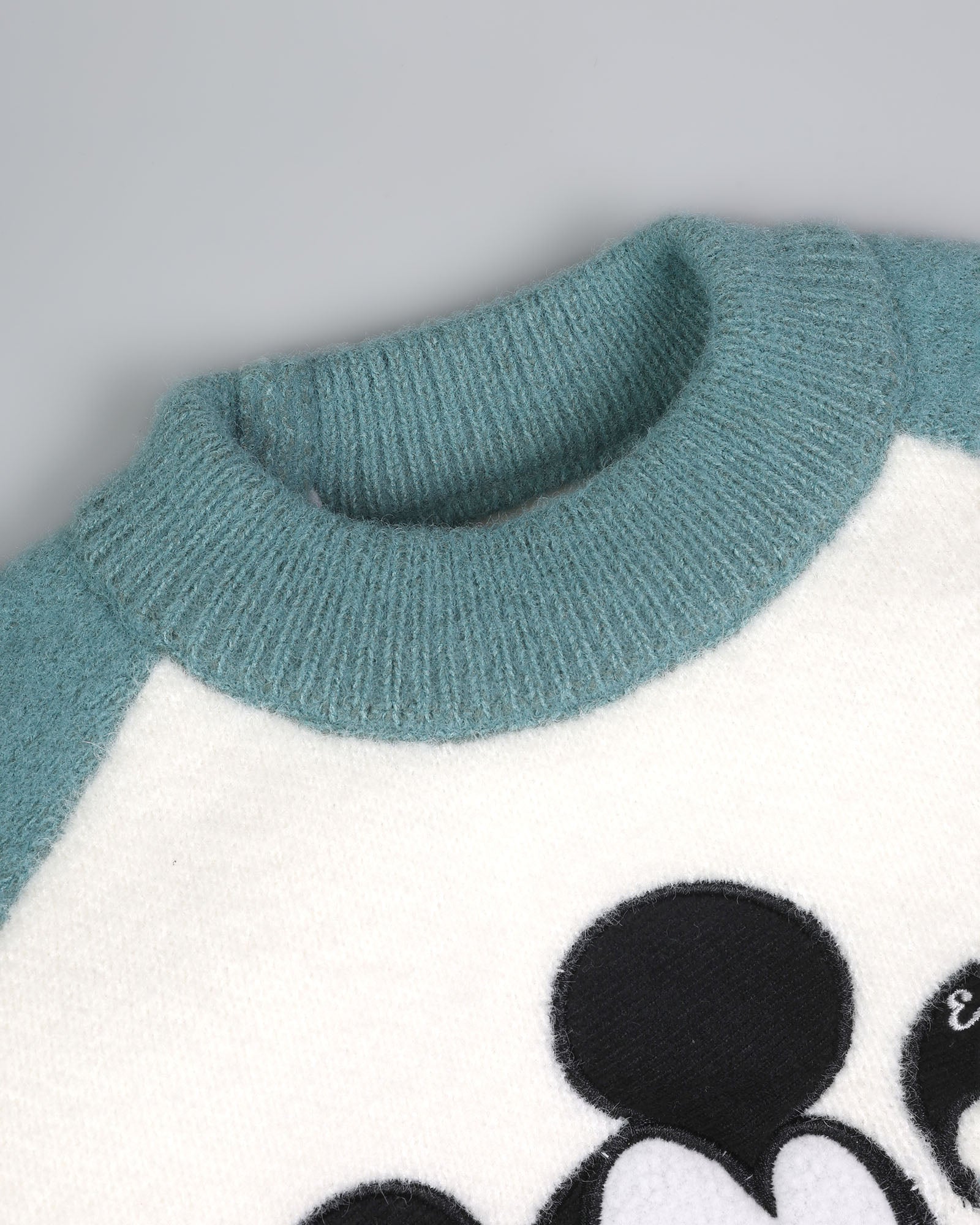 Bring a splash of magic and a whole lot of warmth to your little one’s winter wardrobe with our Mickey Embroidered Dual Tone Sweater – Teal/Snow! 🌟✨