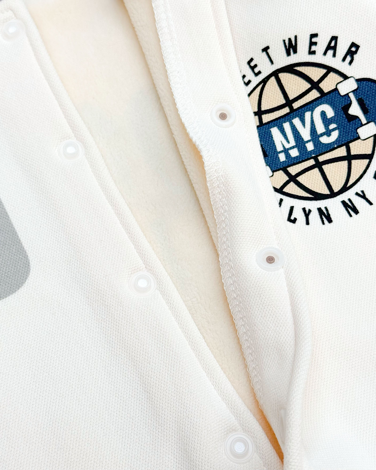 Let your little champ step into the season with true NYC energy! Our NYC Lullaby Printed Baseball Jacket brings together comfort, coolness, and that classic varsity vibe—perfect for kids who love to play, explore, and look effortlessly stylish while doing it. With its soft fleece-feel fabric, sporty contrast sleeves, and trendy NYC graphics on both front and back, this jacket is made for all-day adventure and endless smiles!