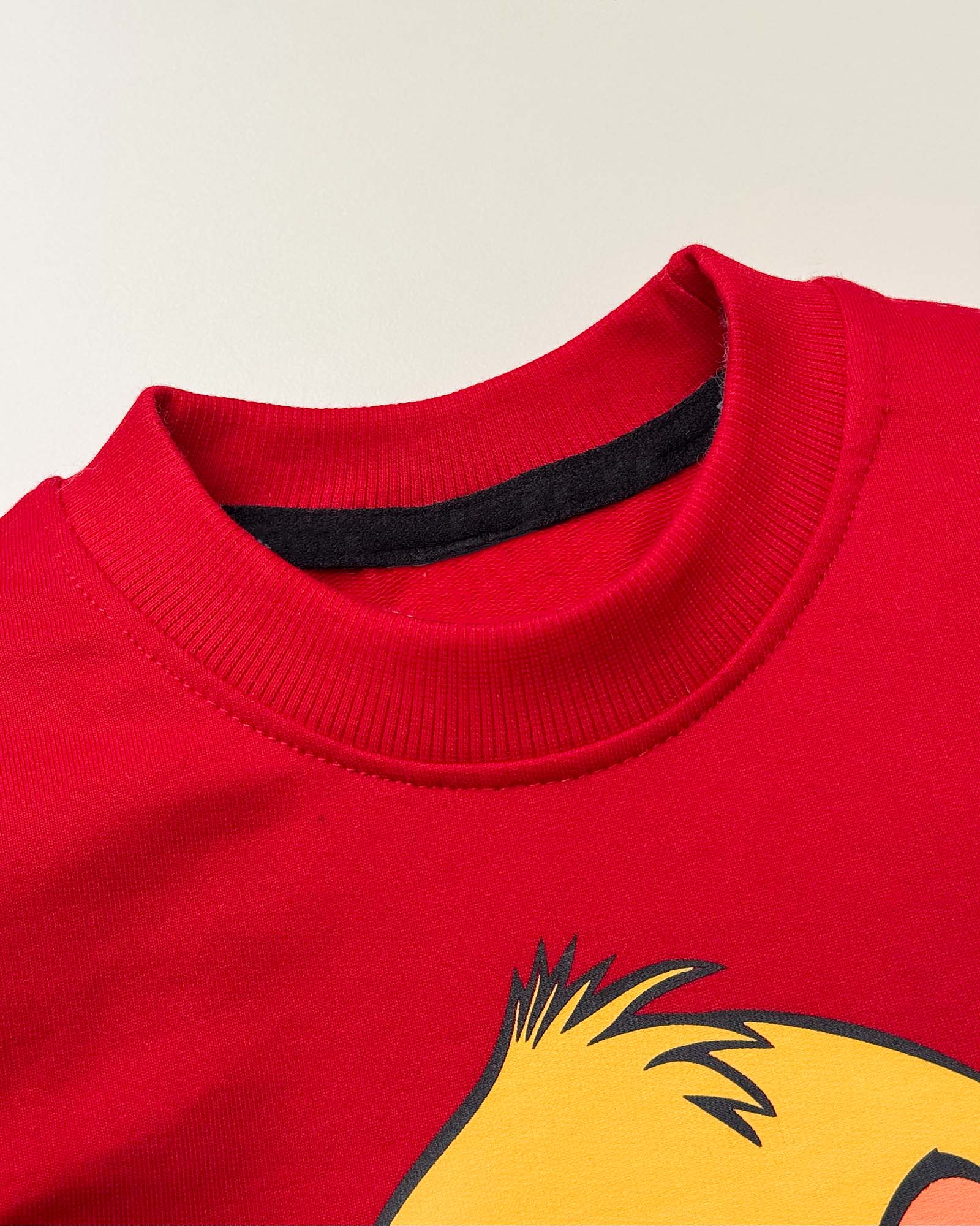 Crafted in light loop-knit fabric, it’s super soft on the skin, gentle for all-day wear, and perfect for those cozy playdates or fun family outings. With Simba’s cheerful face on the sweatshirt and matching printed joggers, it’s a look that’s both comfy and full of character!