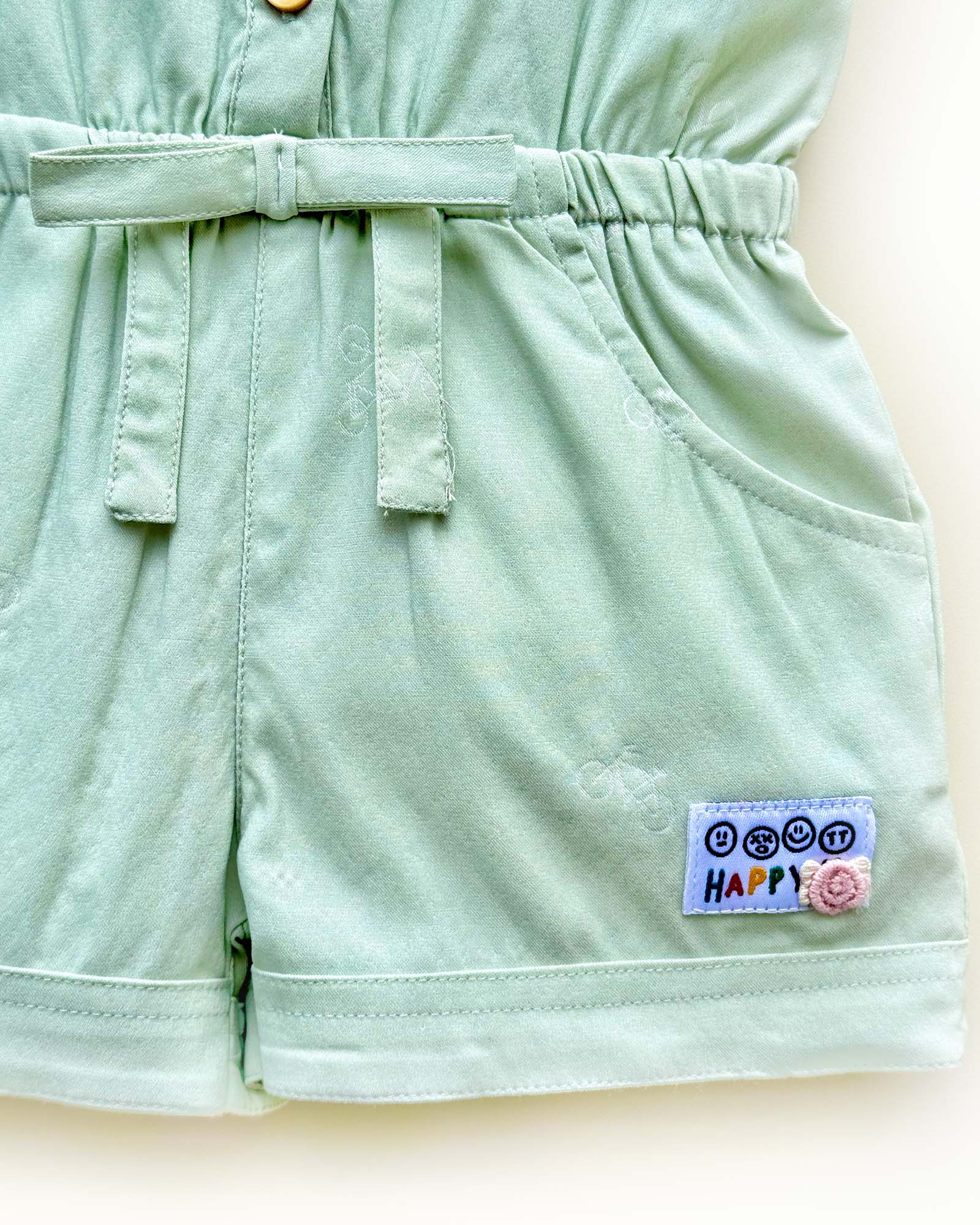 Let your little fashionista step out in style with our Sleeveless Safari Jumpsuit in Pista Green – the perfect blend of playful charm and breezy comfort. Designed for active days full of giggles and adventures, this jumpsuit is crafted with soft, breathable fabric that keeps her cool while she shines bright.