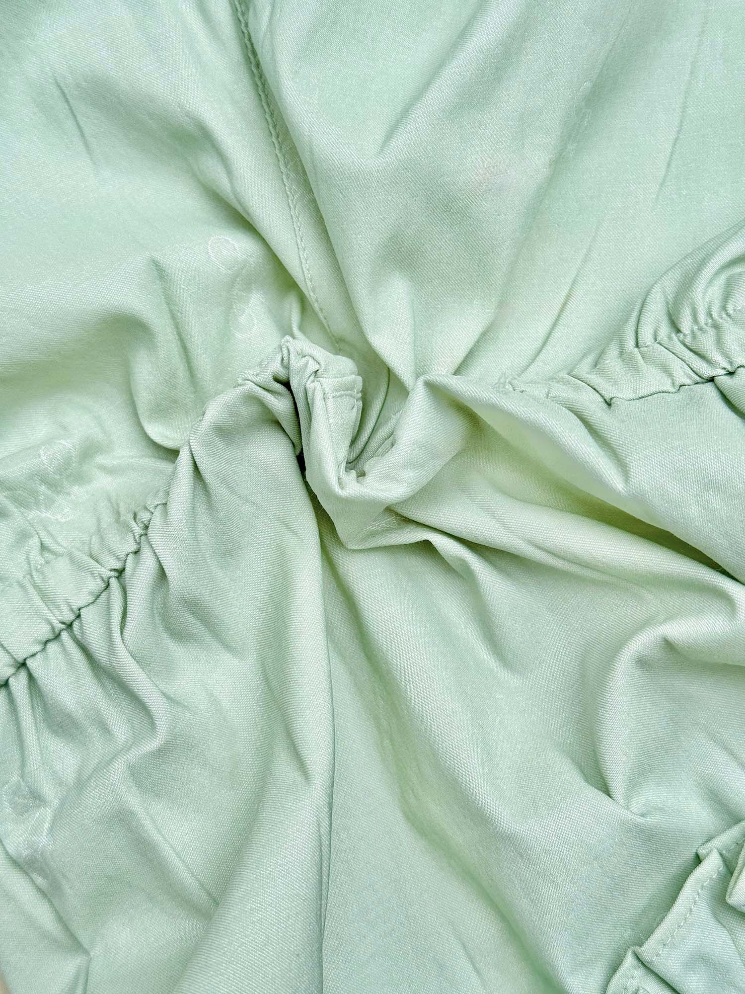 With adorable ruffle shoulder straps, a button-front design, and a comfy elastic waist with a cute bow tie, this jumpsuit makes dressing up fun and fuss-free. The handy side pockets add a dash of practicality for her tiny treasures, while the soft pastel pista green shade makes it a versatile must-have for every little girl’s wardrobe.