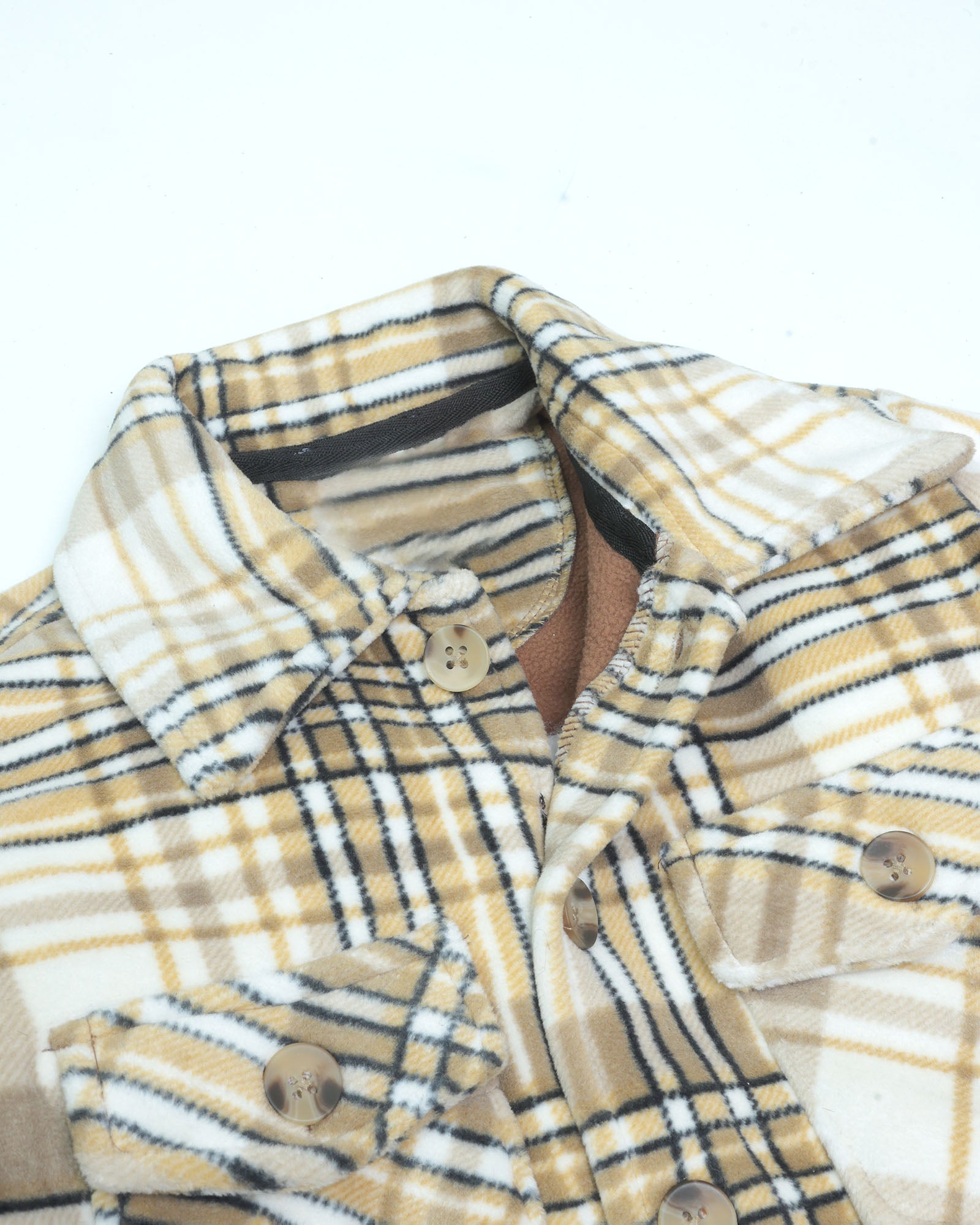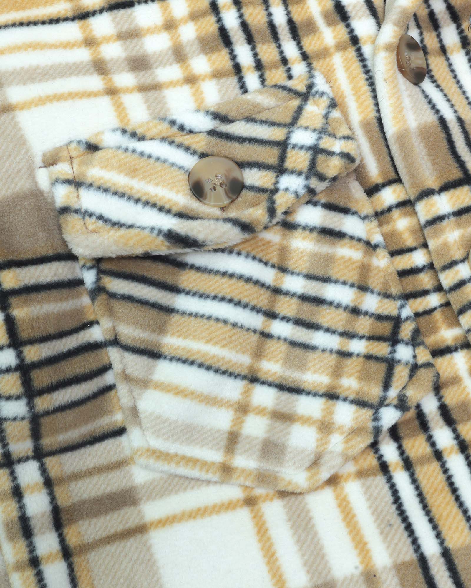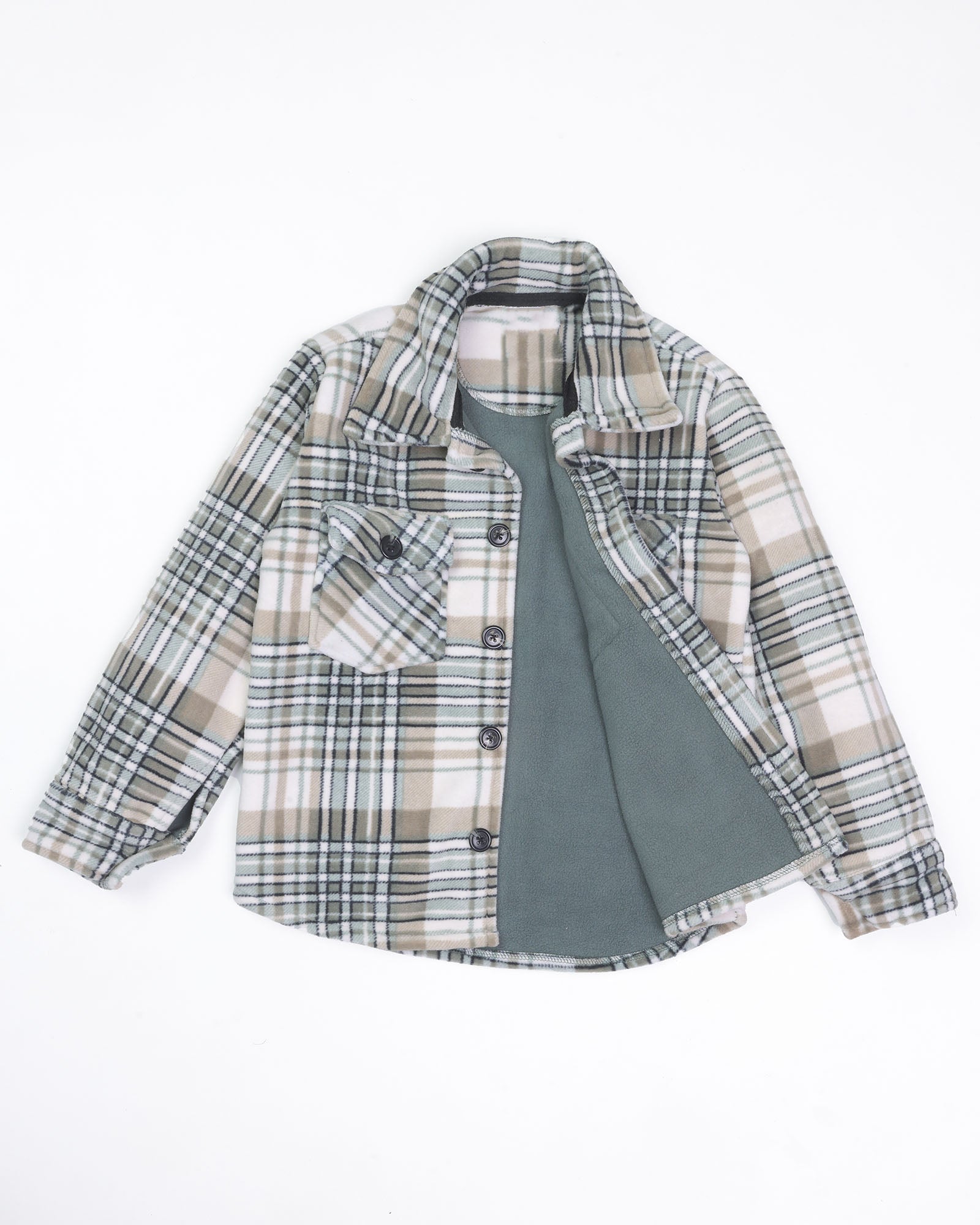 Designed for playful days and picture-perfect outings, this jacket features a classic check pattern in warm neutral tones, crafted from soft-touch flannel fabric that feels gentle on young skin while keeping them snug and stylish.