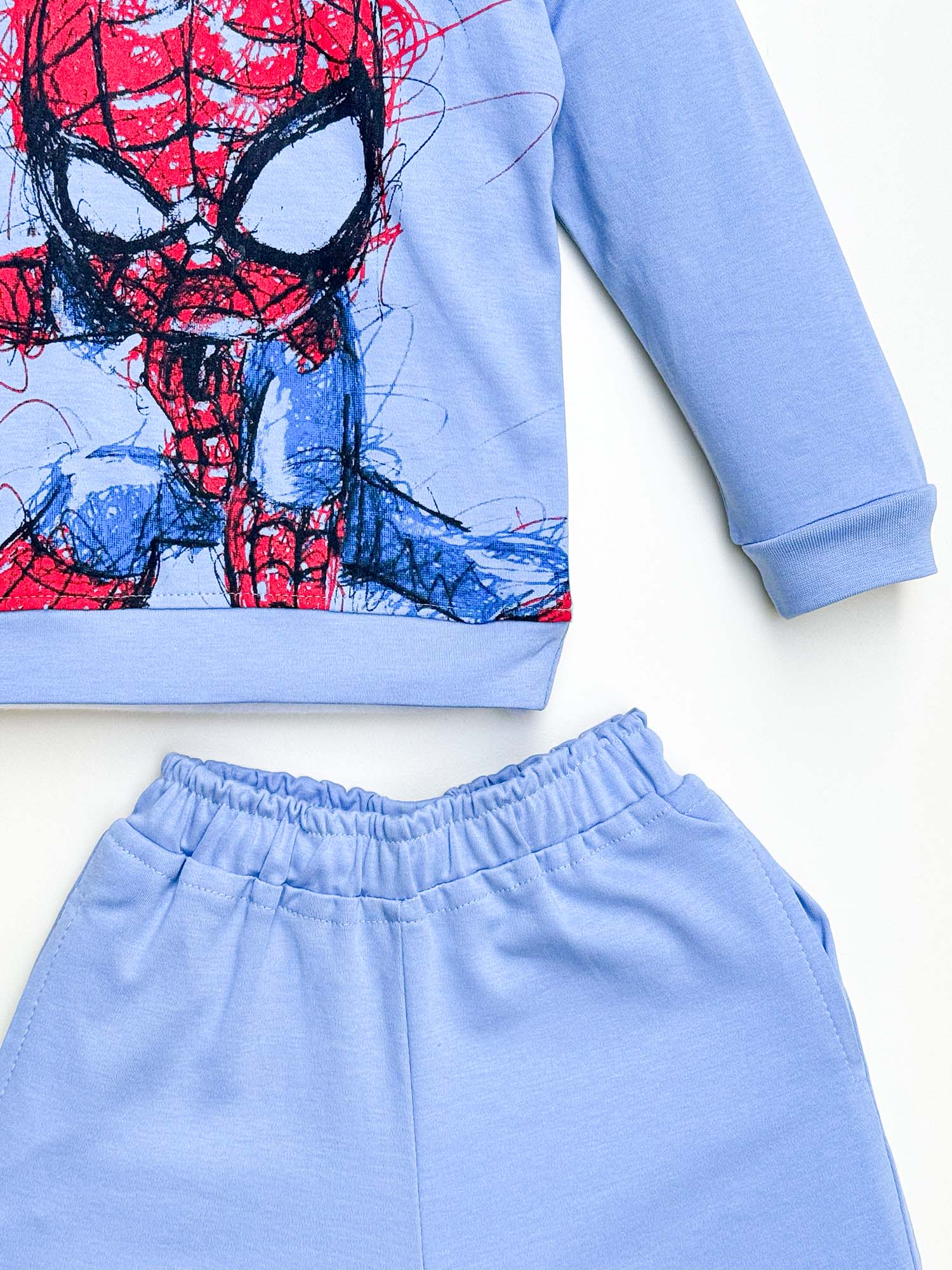 The soft, breathable cotton fabric feels gentle on delicate skin, while the stretchable waistband and ribbed cuffs ensure a perfect fit. Stylish, comfy, and adventure-ready — it’s the ultimate everyday outfit for your little web-slinger! 🕷️