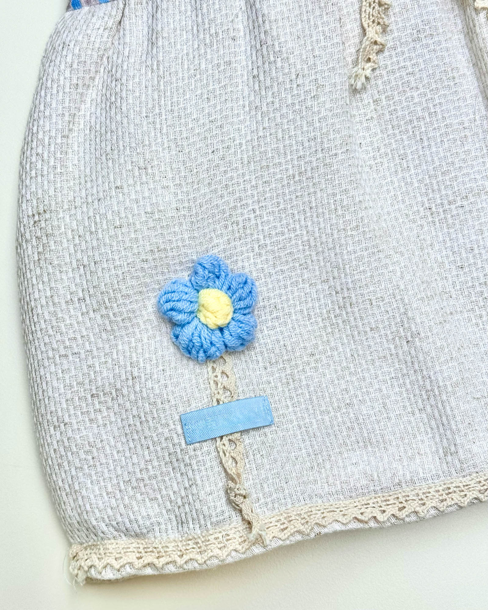 With its soft, multicolored stripe pattern, delicate details, and matching cotton bloomer, this dress is both picture-perfect and play-approved. Whether it’s a sunny day at the park, a casual family get-together, or just a cozy day at home, this baby casual dress is a go-to pick for style and ease.