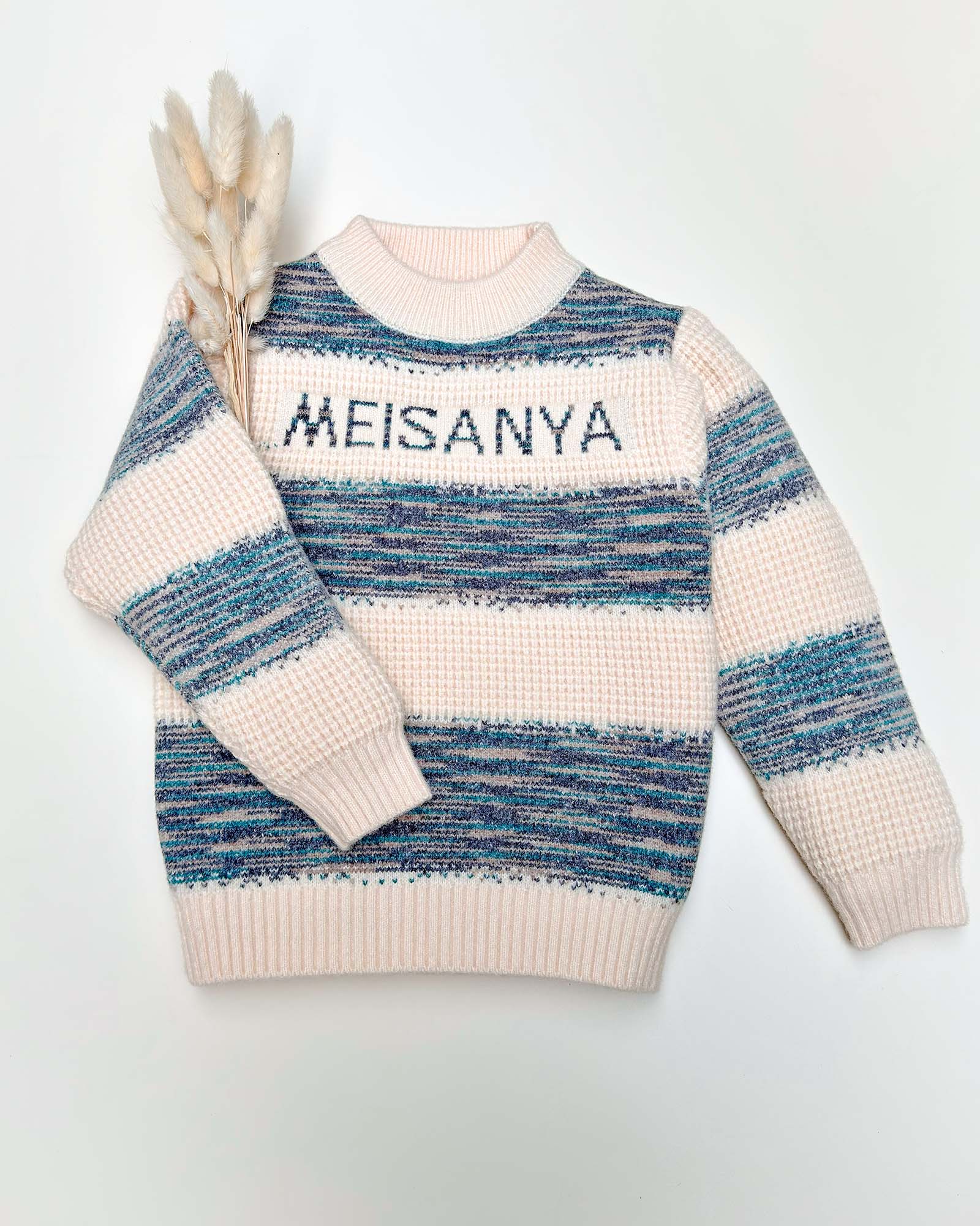 Let your little star take on winter in sporty style with our Striped Full-Sleeve Sweater in Green & Cream! Made from premium textured knit fabric, this pullover combines cozy warmth with effortless cool. The eye-catching two-tone stripes and bold MEISANYA lettering across the chest add a trendy touch that keeps him looking stylish on every playdate, family outing, or school day.