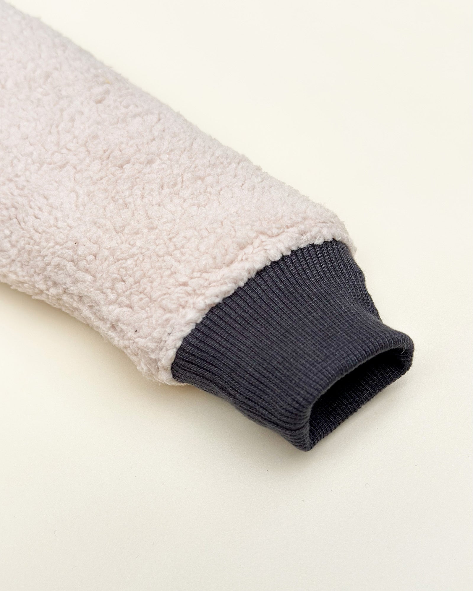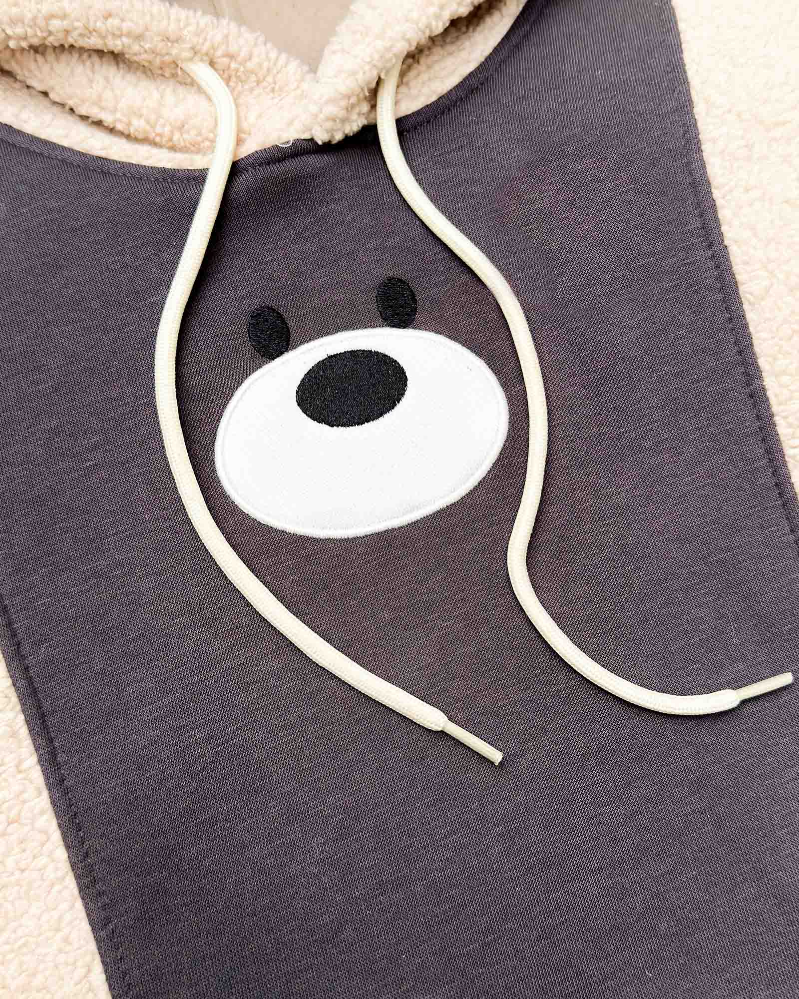 This isn't just any hoodie; itβs the ultimate fusion of modern "street style" and cloud-like comfort. Featuring a unique dual-texture design, this hoodie pairs a sleek, dark grey center panel with incredibly plush, cream-colored sherpa fleece sleeves and a matching hood. The centerpiece is a minimalist, adorable bear face applique that adds a touch of playful charm to this edgy urban look.