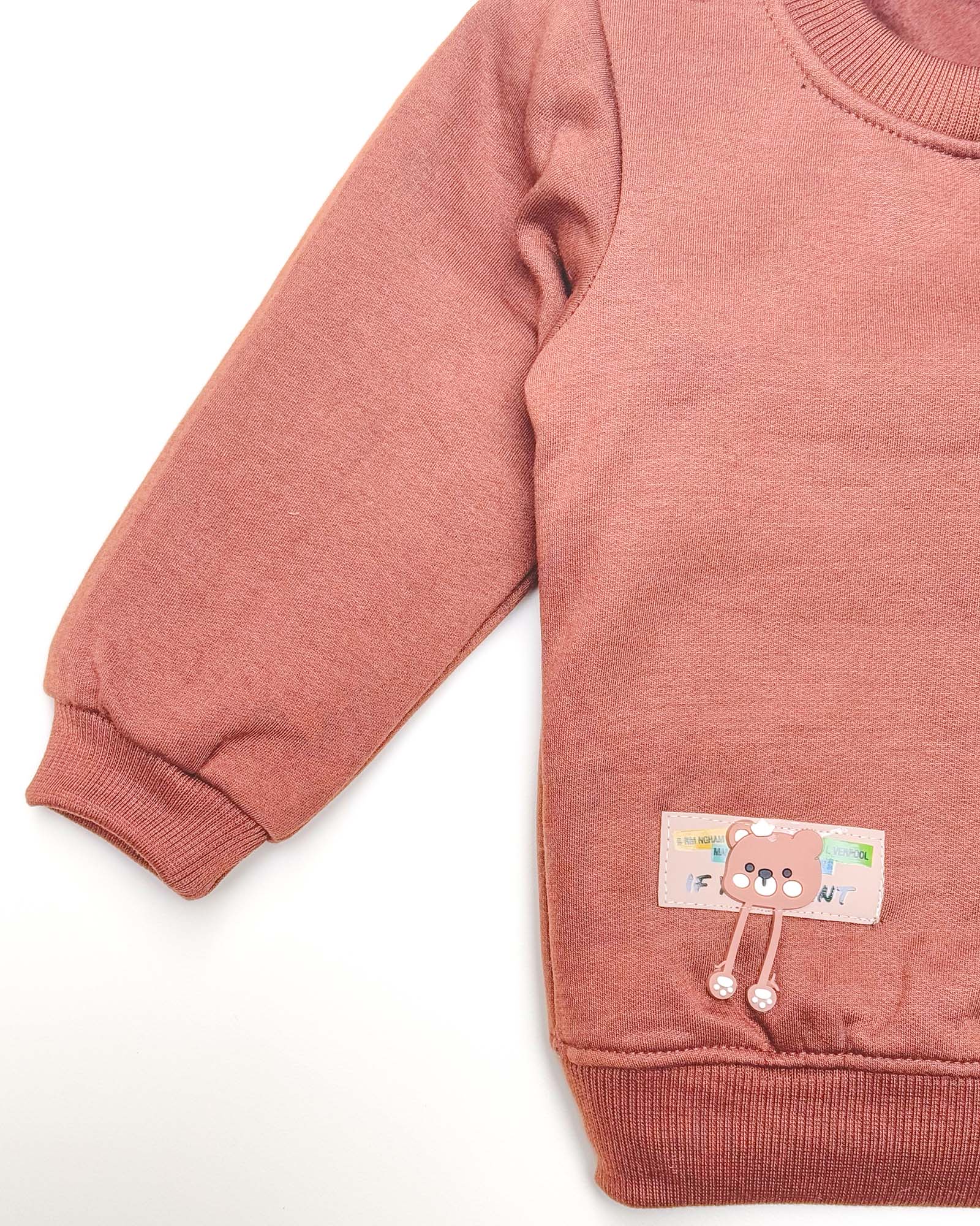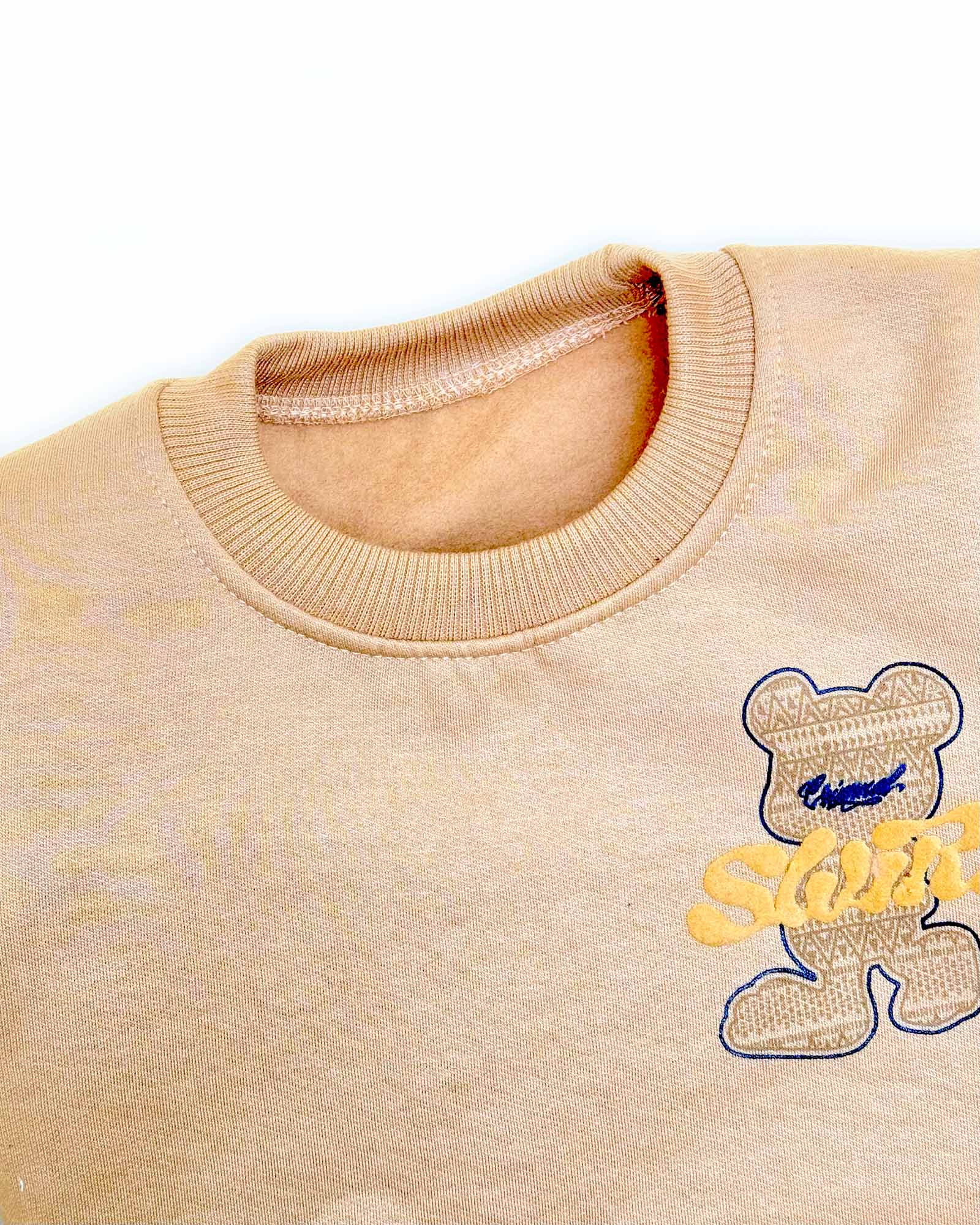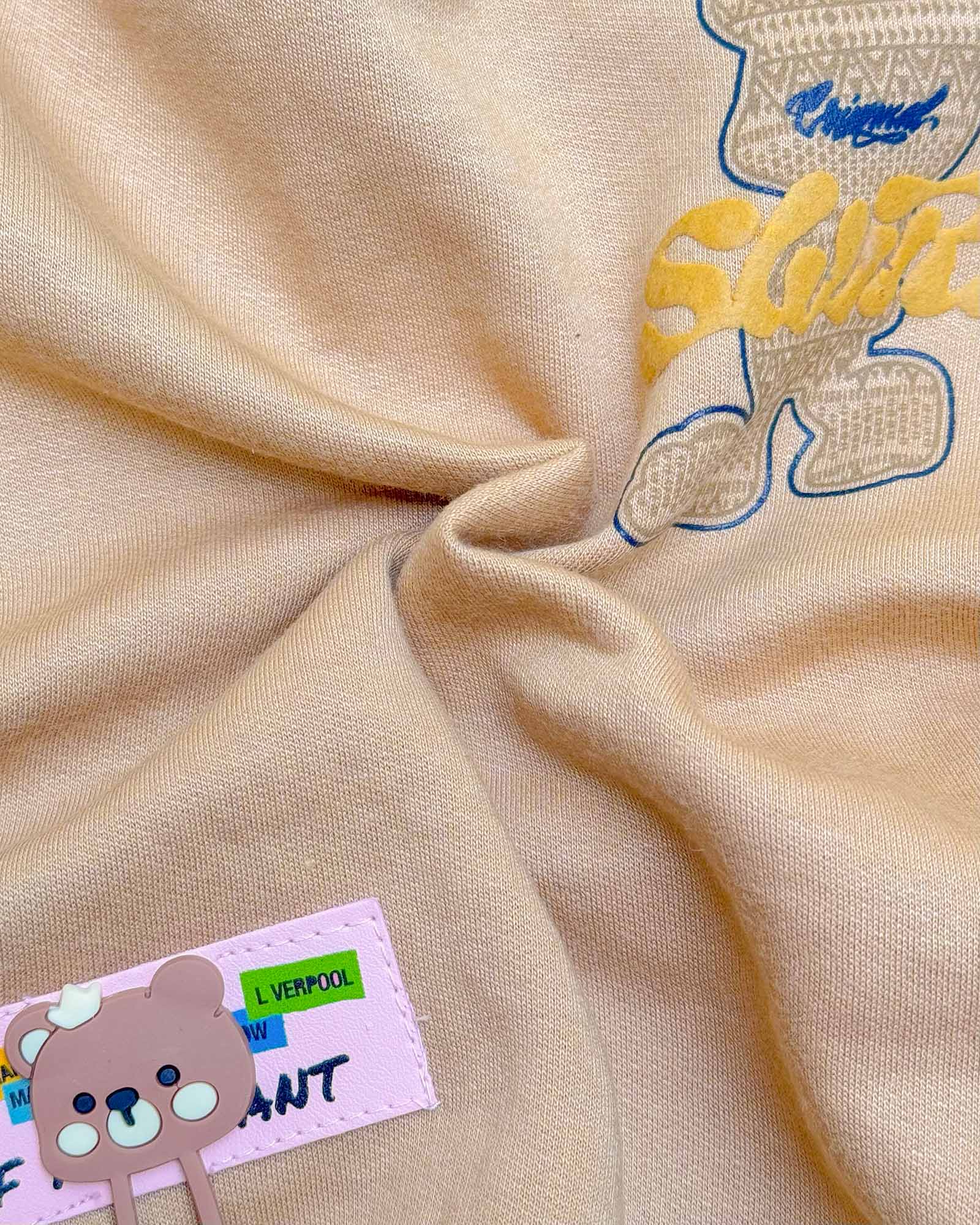Made with premium light fleece fabric, it ensures snuggly warmth without the bulk, making it an ideal pick for active kids. The cute teddy bear detail with “Swirl” Print and playful patchwork add a dash of fun to this everyday outfit!