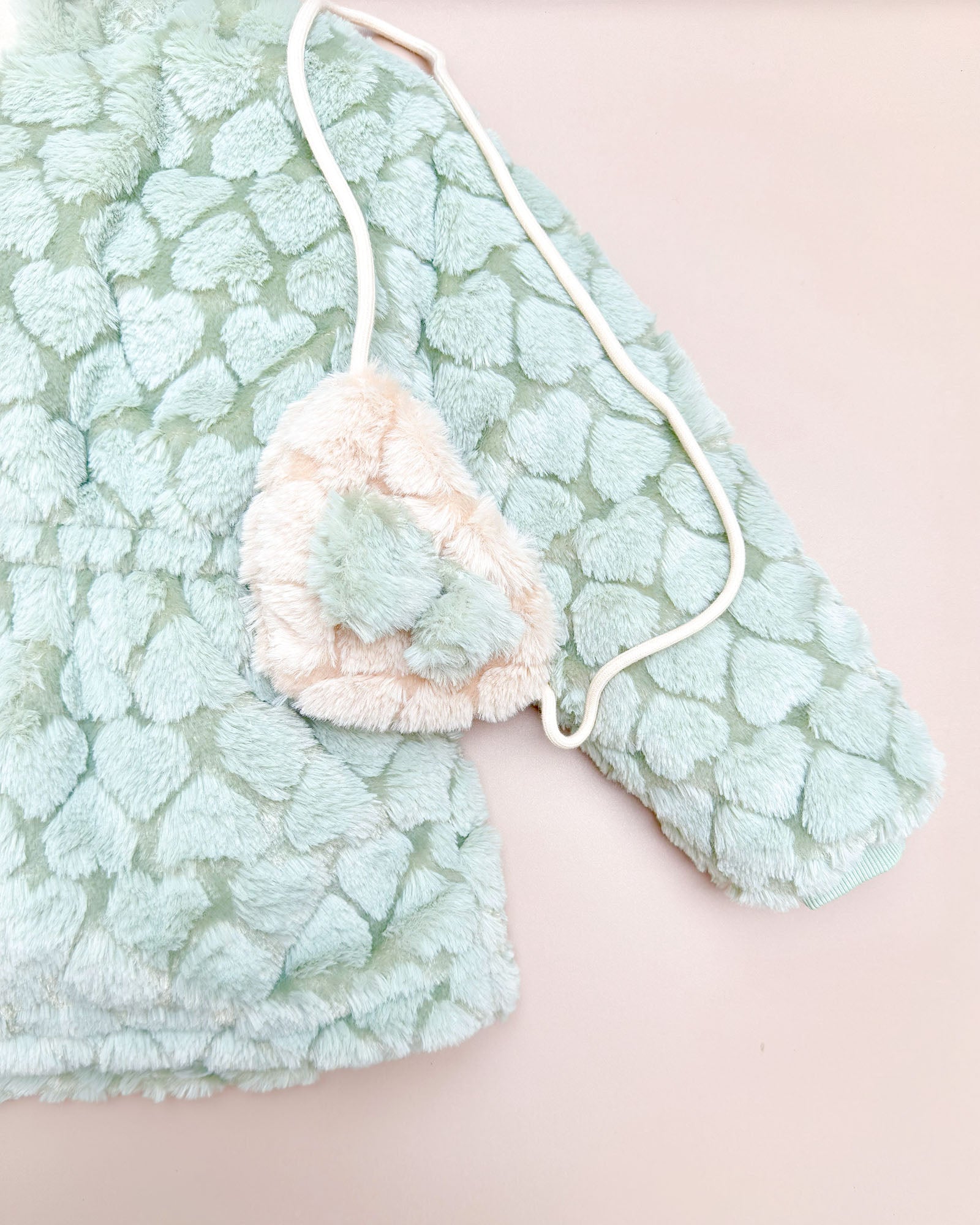 Make chilly days extra fun and fashionable with our Textured Fur Full-Sleeve Jacket with Sling Bag – Pista Green! Crafted from ultra-soft, high-quality faux fur, this adorable winter jacket wraps your little one in plush warmth and all-day comfort. The soft pastel hue, heart-patterned texture, and playful design make it an instant winter favorite!