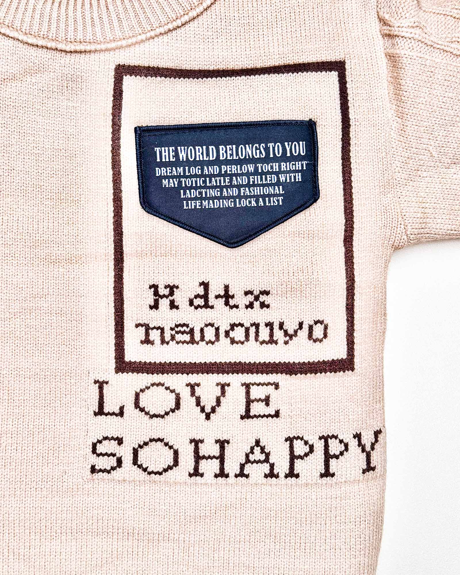 The stylish textured weave, playful embroidered patchwork, and modern "LOVE SOHAPPY" graphic make it a standout choice for everyday wear. Whether it’s a family outing or a casual playdate, this sweater brings the perfect balance of comfort, fashion, and fun!