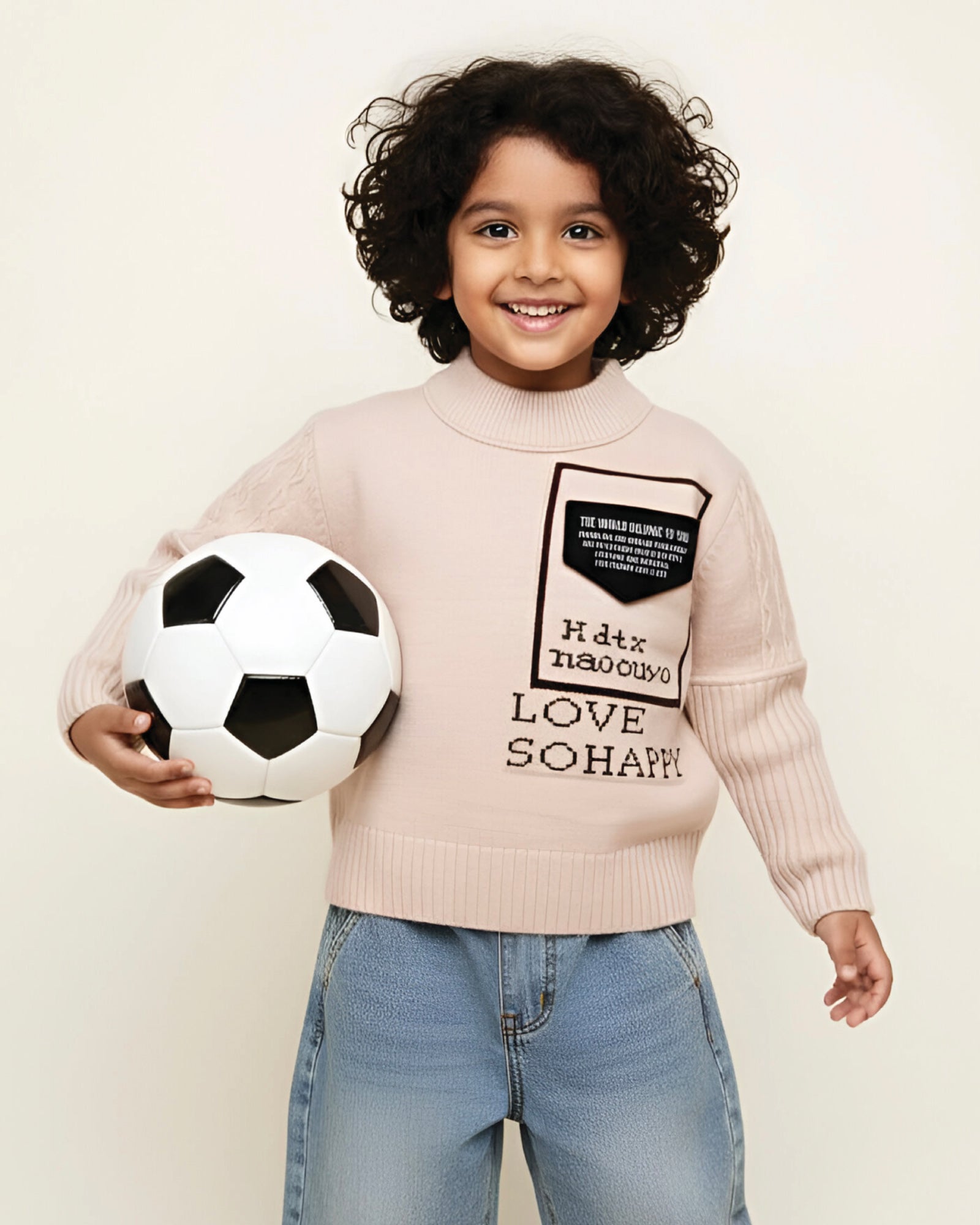 Wrap your little champ in comfort and style with our Textured Pattern Full-Sleeve Sweater in Beige — a perfect blend of cozy warmth and trendy charm! Designed for active little explorers, this pullover is crafted from premium, ultra-soft knit fabric that keeps them snug through every giggle, jump, and soccer kick!