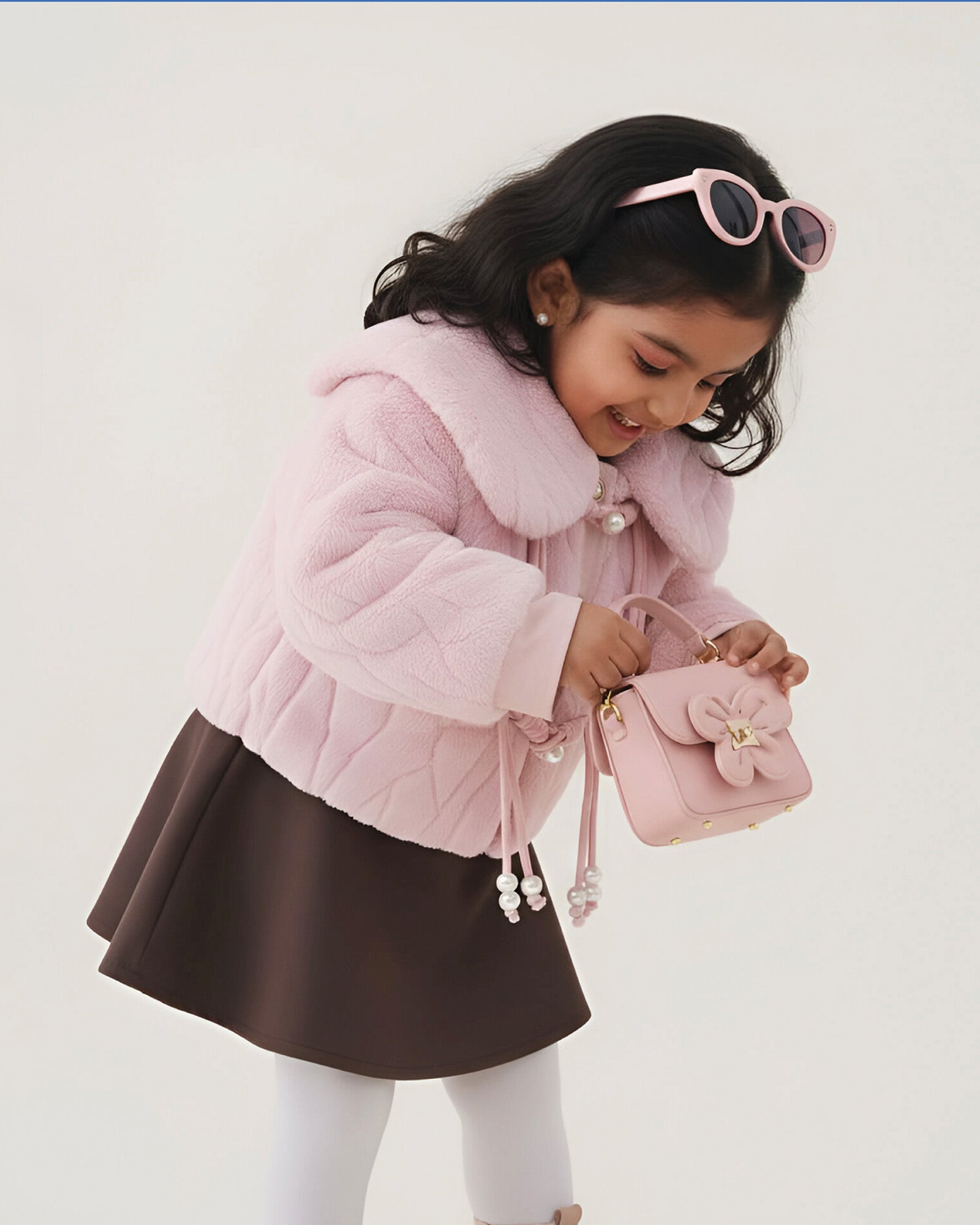 Give your baby girl the gift of pure elegance with our Vintage Textured Fleeced Fur Jacket, designed to make every little moment extra magical. This dreamy pastel-pink beauty blends classic vintage charm with modern comfort, creating the perfect winter wardrobe essential for your princess.